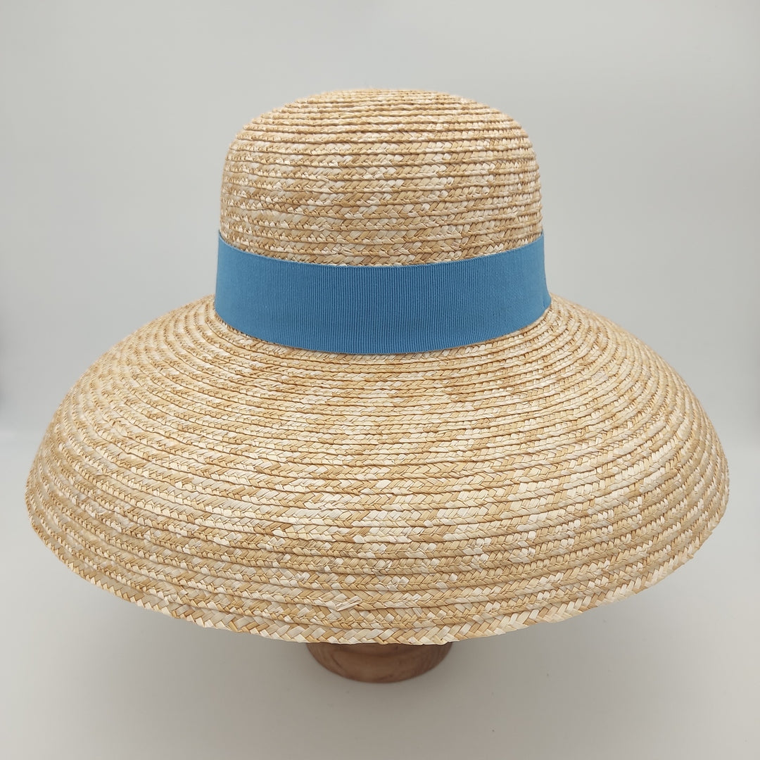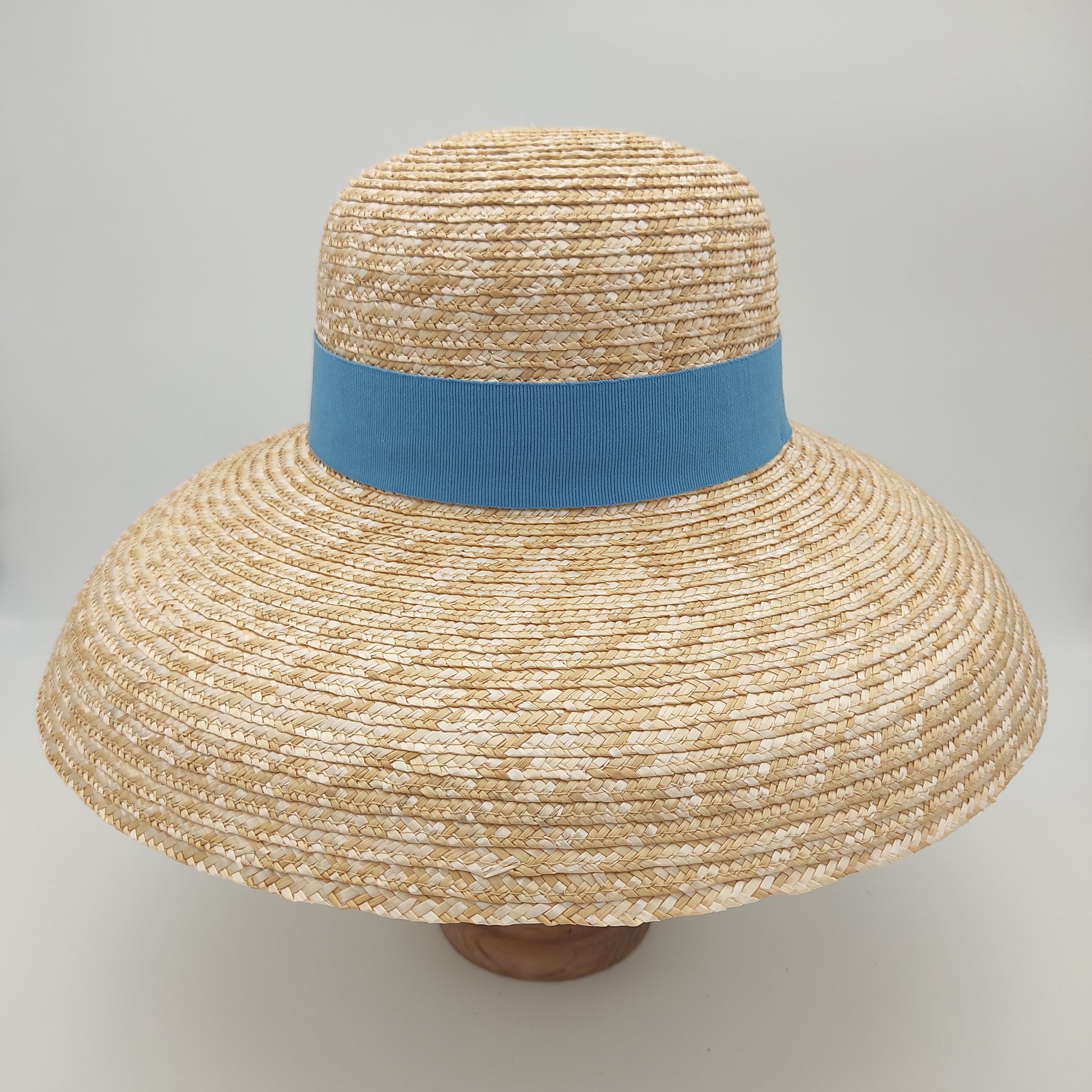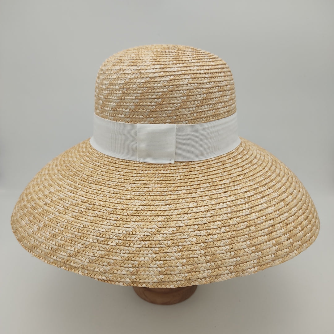Il cappello "Amione" è un accessorio elegante e raffinato, perfetto per occasioni speciali, eventi in città, o serate eleganti. Questo cappello è realizzato al 100% in paglia intrecciata finemente, garantendo leggerezza e durata. È caratterizzato da una tesa larga che si inclina verso il basso, offrendo non solo uno stile sofisticato, ma anche una protezione efficace dal sole.