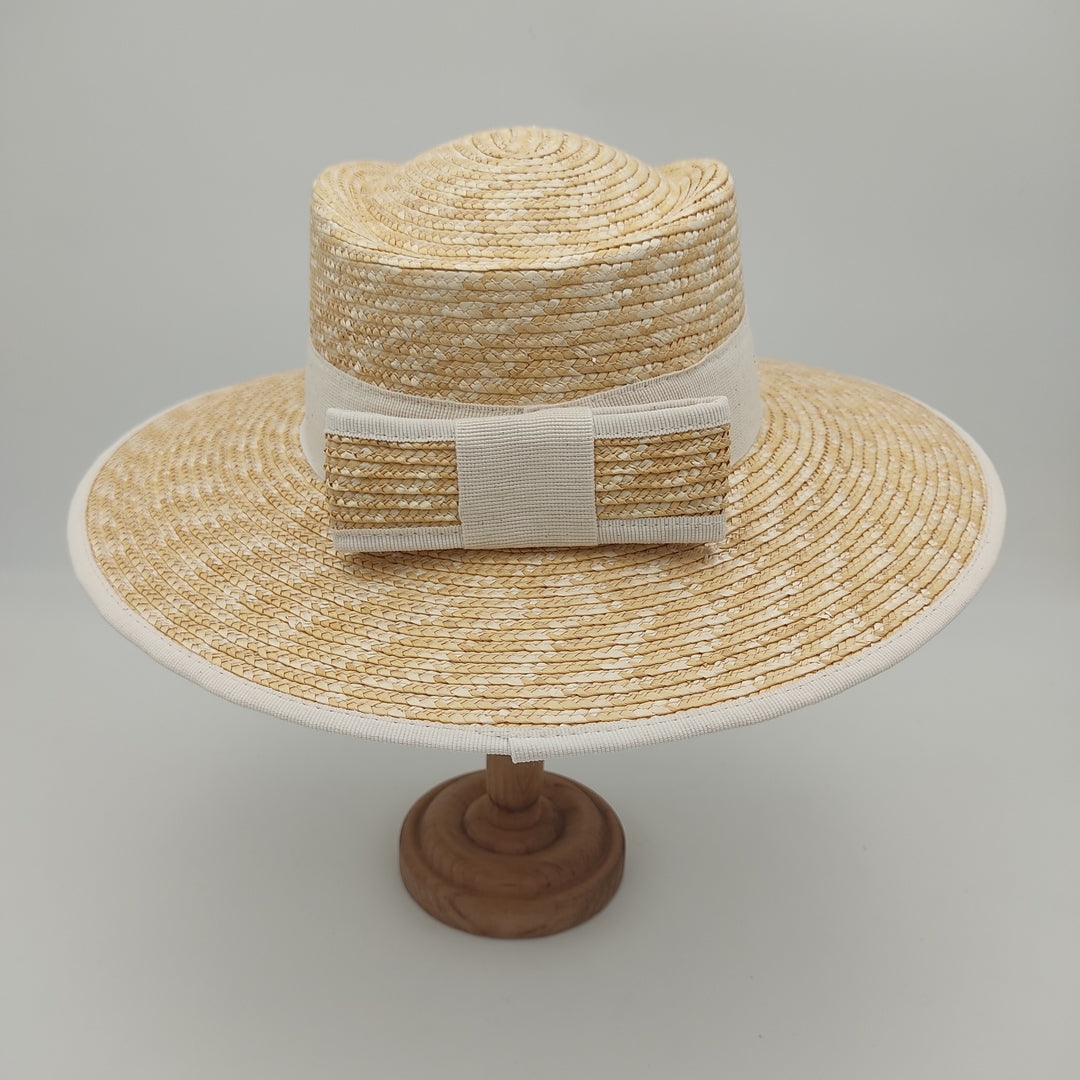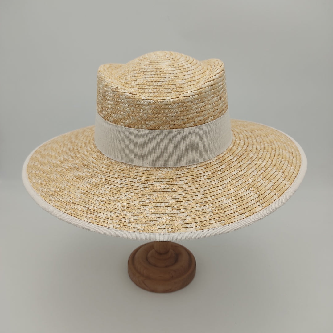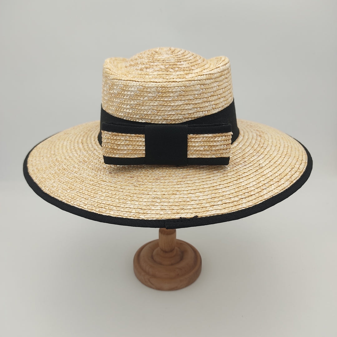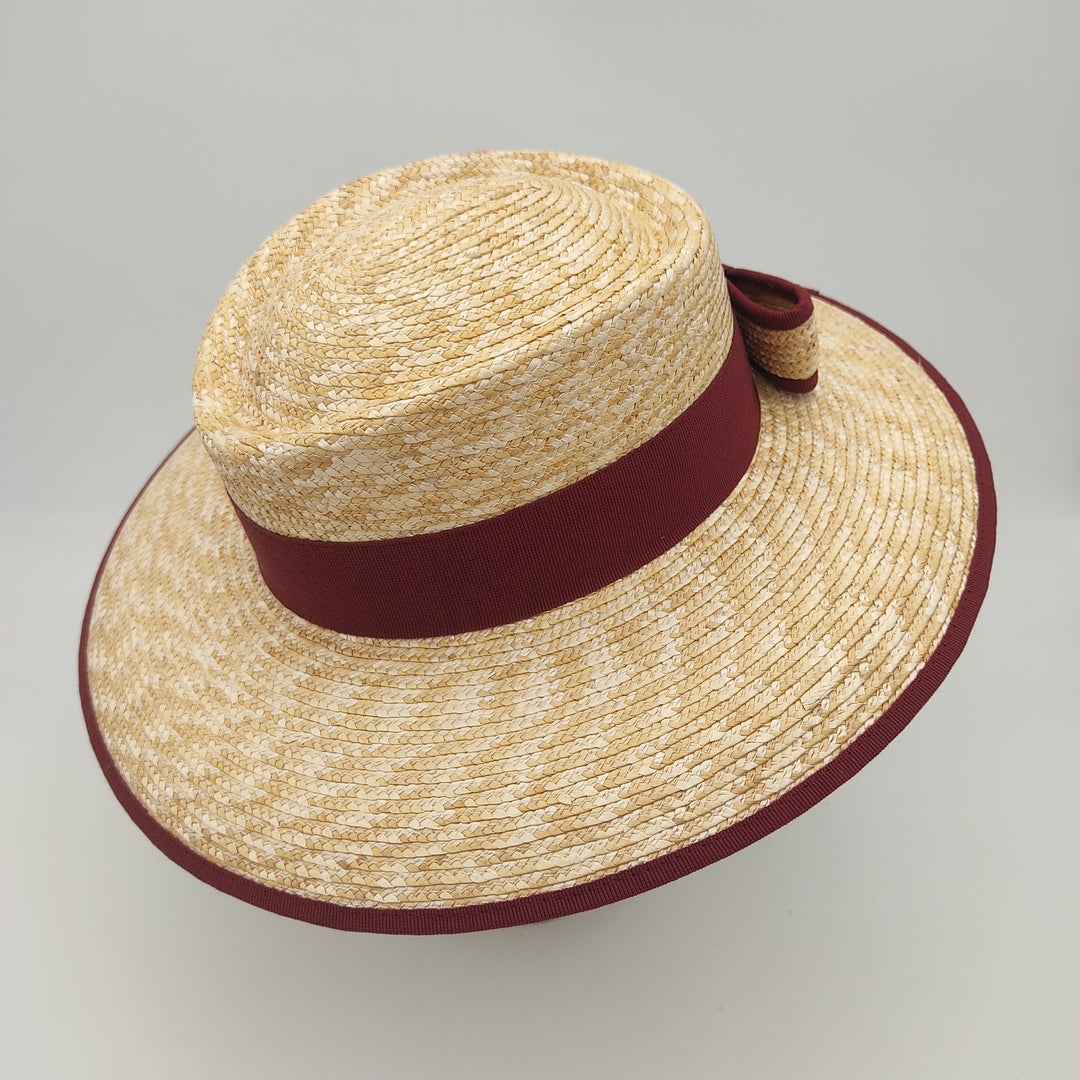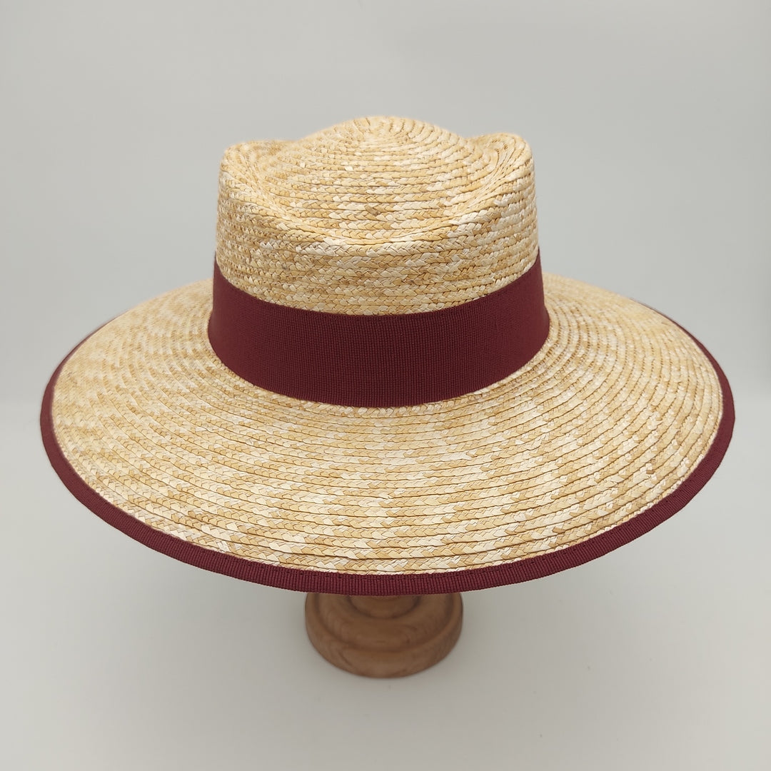 Angela D è un cappello elegante e versatile, perfetto per una donna che ama lo stile casual chic, ma anche per occasioni speciali ed eleganti. Realizzato a mano in Italia, questo cappello è fatto di paglia naturale al 100% in una fine treccia. La corona alta di 9 cm e la falda di 8 cm offrono una protezione solare eccellente. Il materiale è durevole e traspirante, garantendo comfort in ogni situazione. Disegnato in Italia con cura artigianale, Angela D rappresenta l'unione perfetta tra funzionalità e stile.