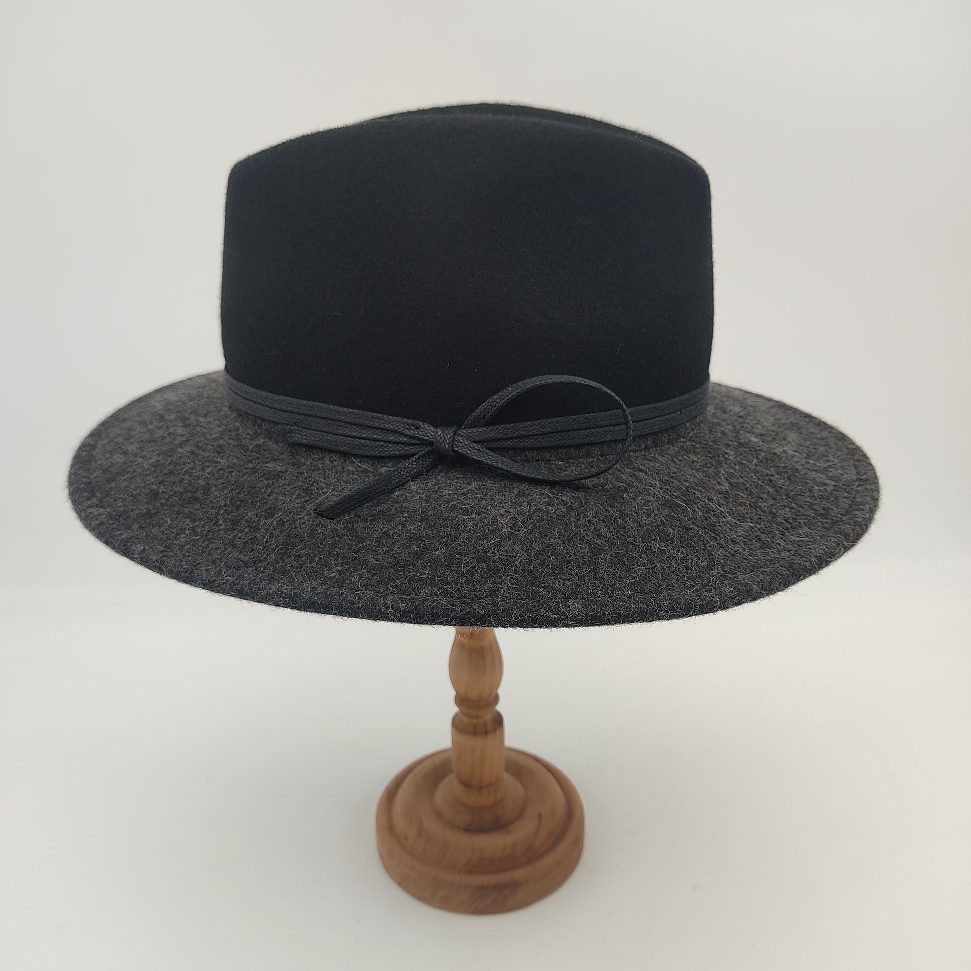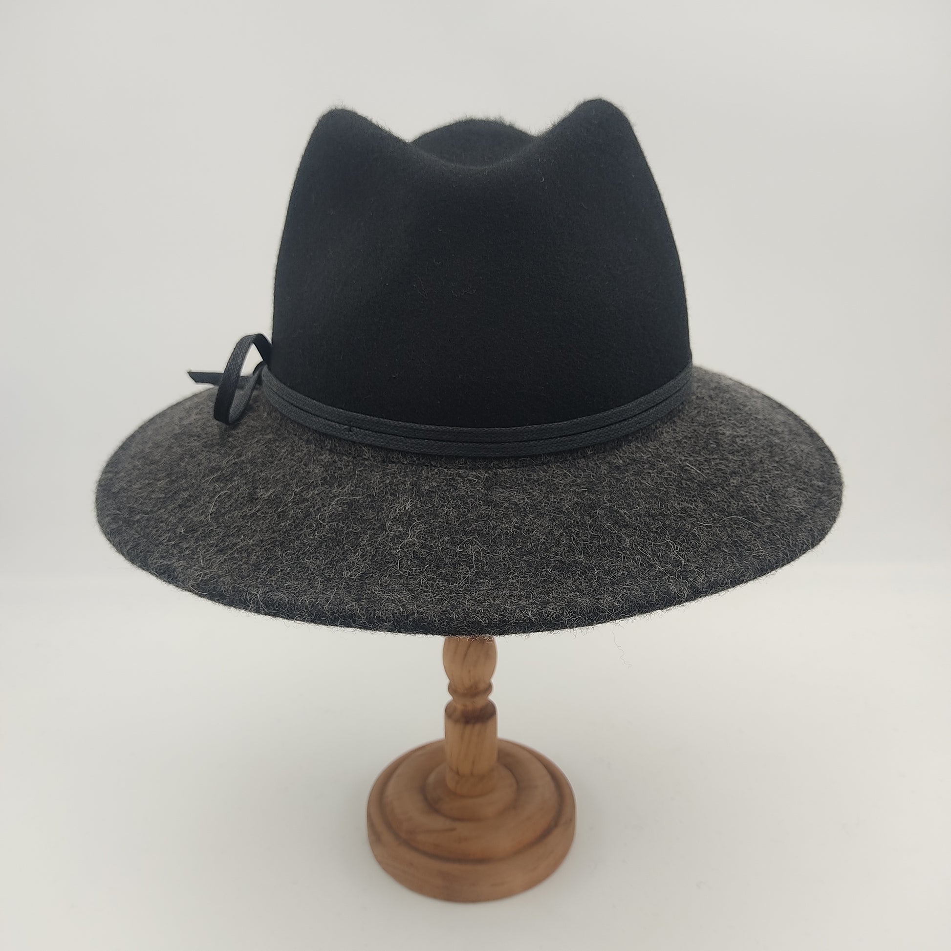 Il cappello Anita è un elegante cappello dal taglio maschile, perfetto per uno stile casual chic. Realizzato in Italia con 100% feltro di lana resistente, questo cappello bicolore si distingue per la sua falda larga 7 cm leggermente spiovente e la testa a goccia. La decorazione include un nastrino intrecciato con fiocco laterale, aggiungendo un tocco di raffinatezza. Disponibile in due varianti di colore: testa antracite con tesa nera o viceversa, Anita offre versatilità e stile per ogni occasione.