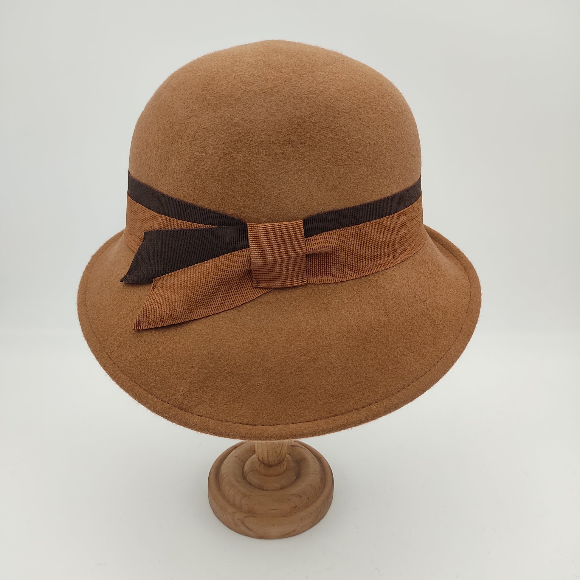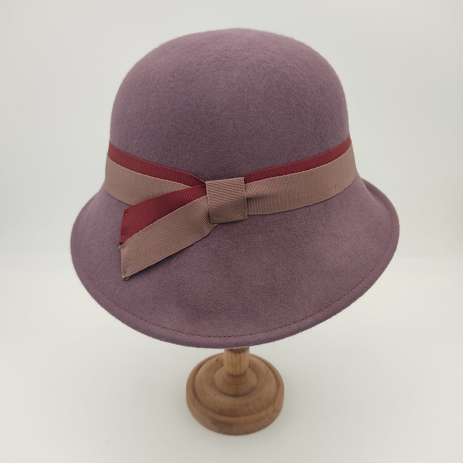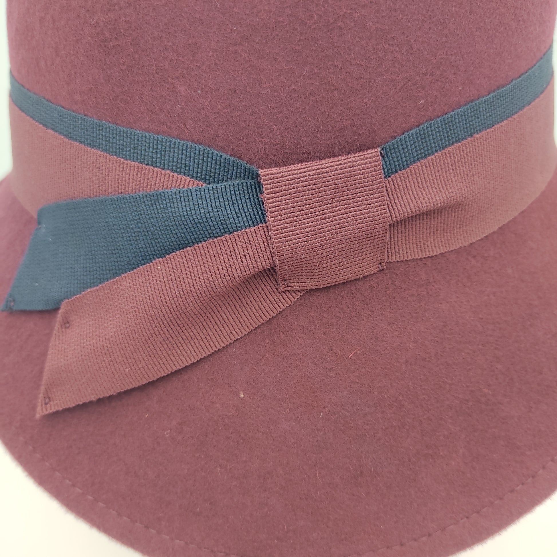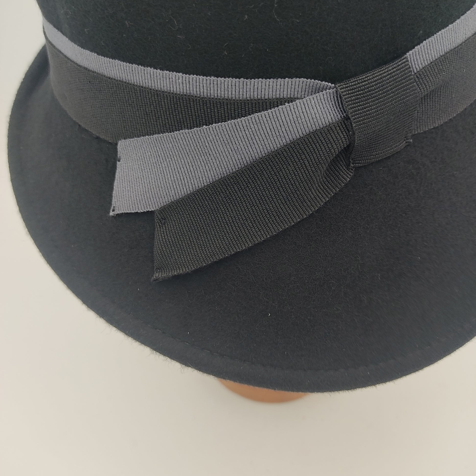 Il cappello Cora è una raffinata cloche asimmetrica per donna dallo stile elegante. Realizzato in Italia con feltro di lana al 100%, questo copricapo si distingue per la sua falda asimmetrica che raggiunge un'ampiezza di 9 cm.