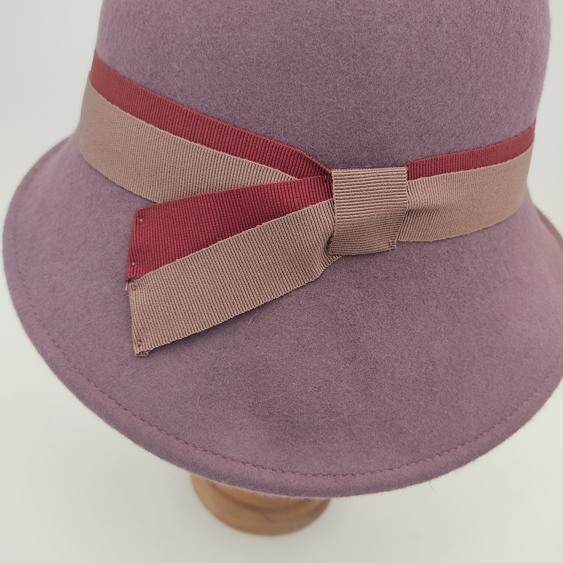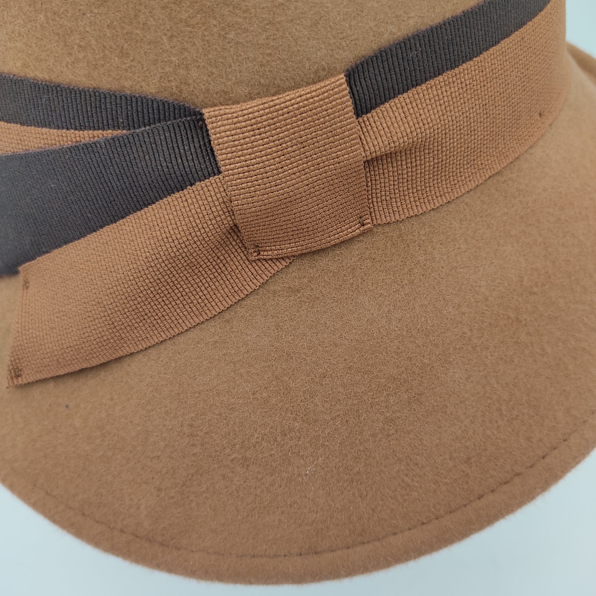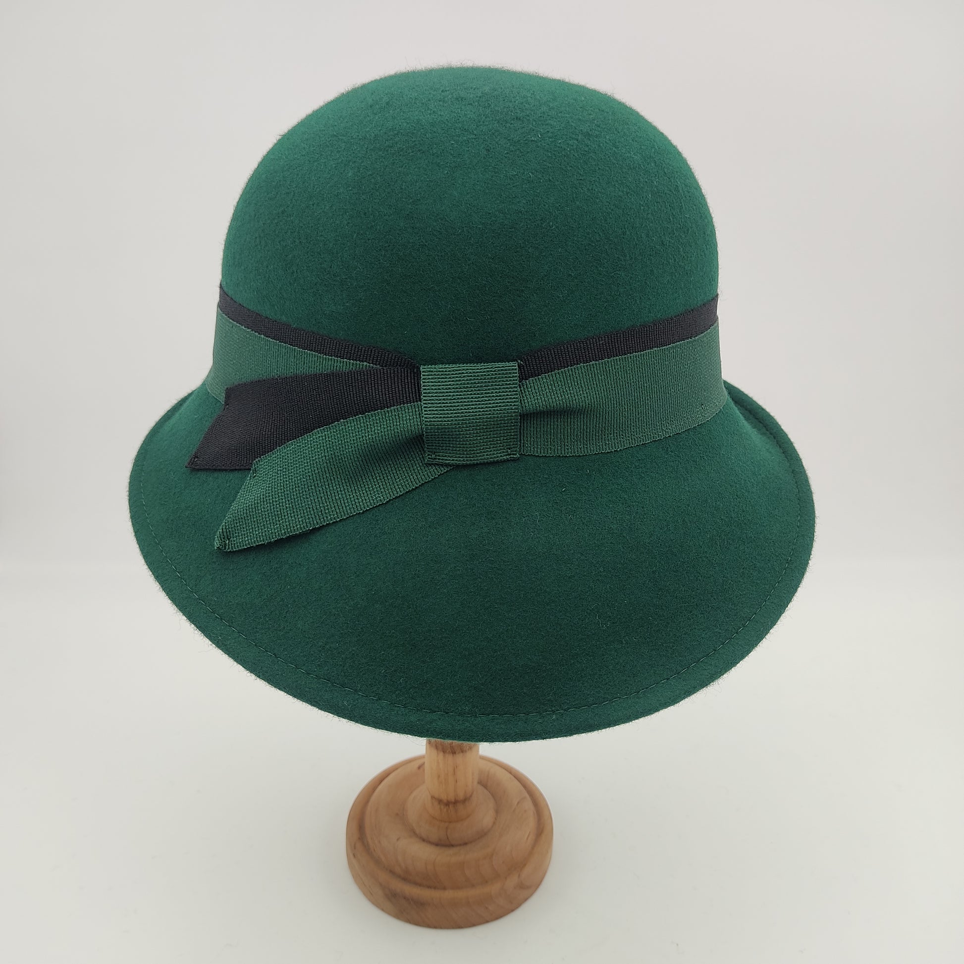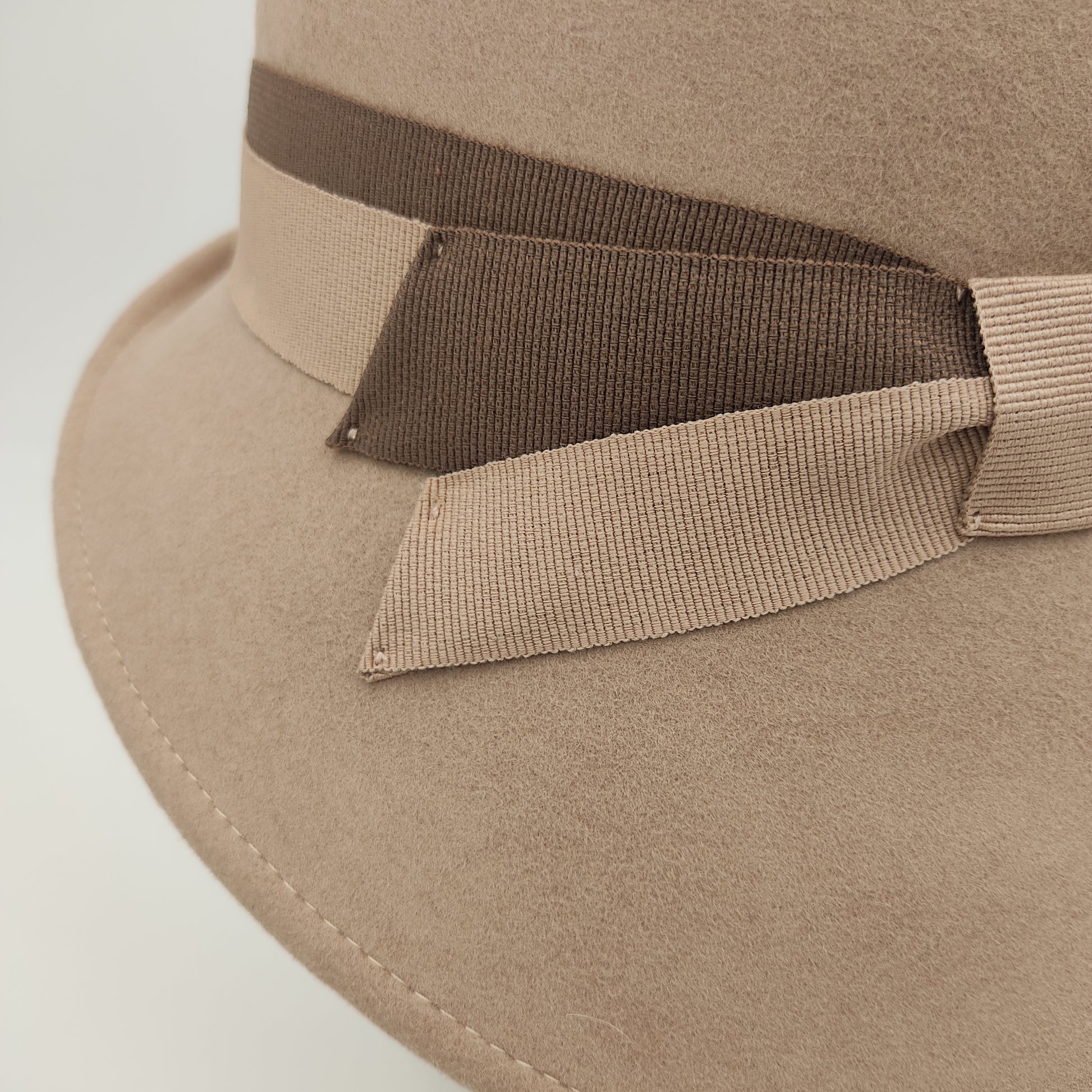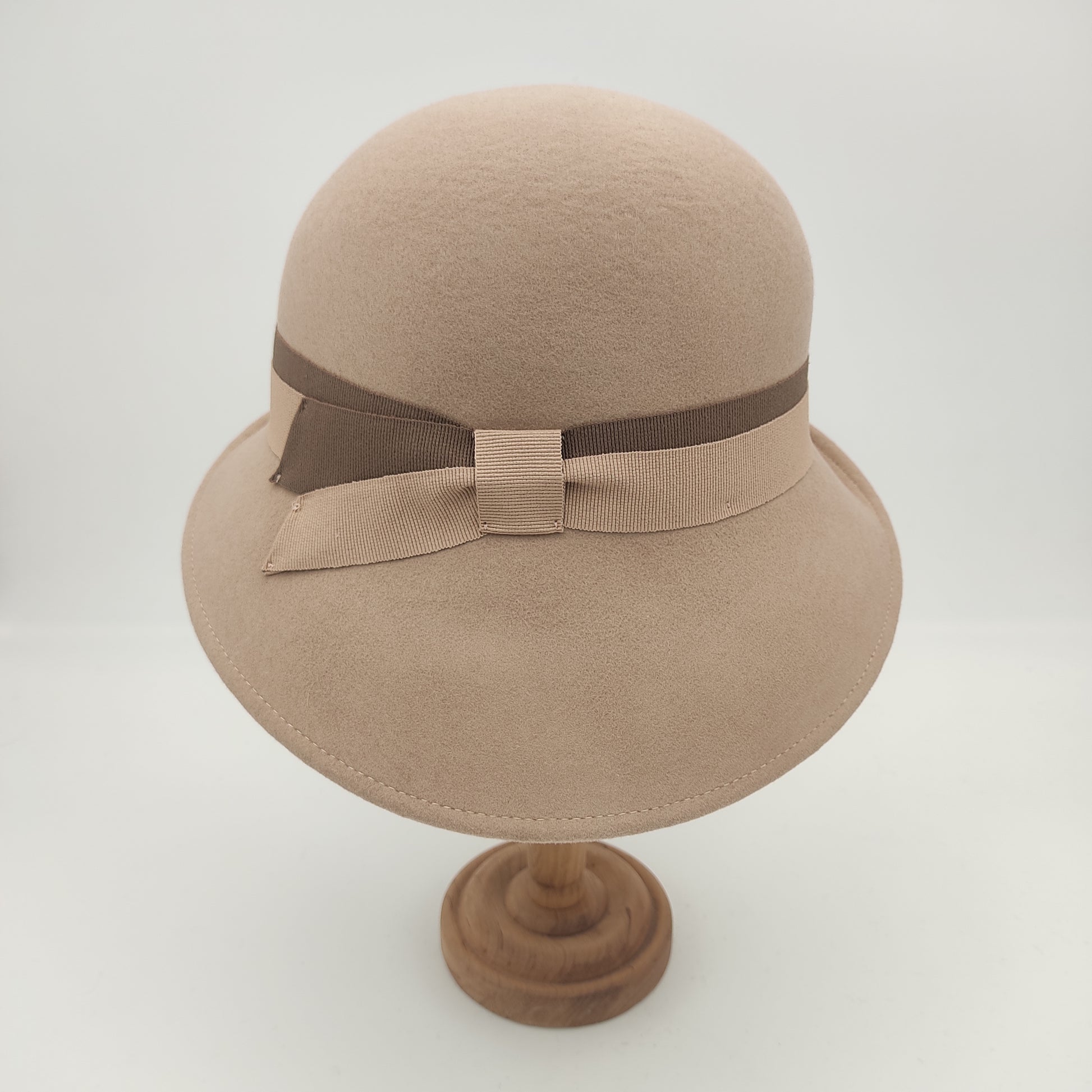 Il cappello Cora è una raffinata cloche asimmetrica per donna dallo stile elegante. Realizzato in Italia con feltro di lana al 100%, questo copricapo si distingue per la sua falda asimmetrica che raggiunge un'ampiezza di 9 cm.