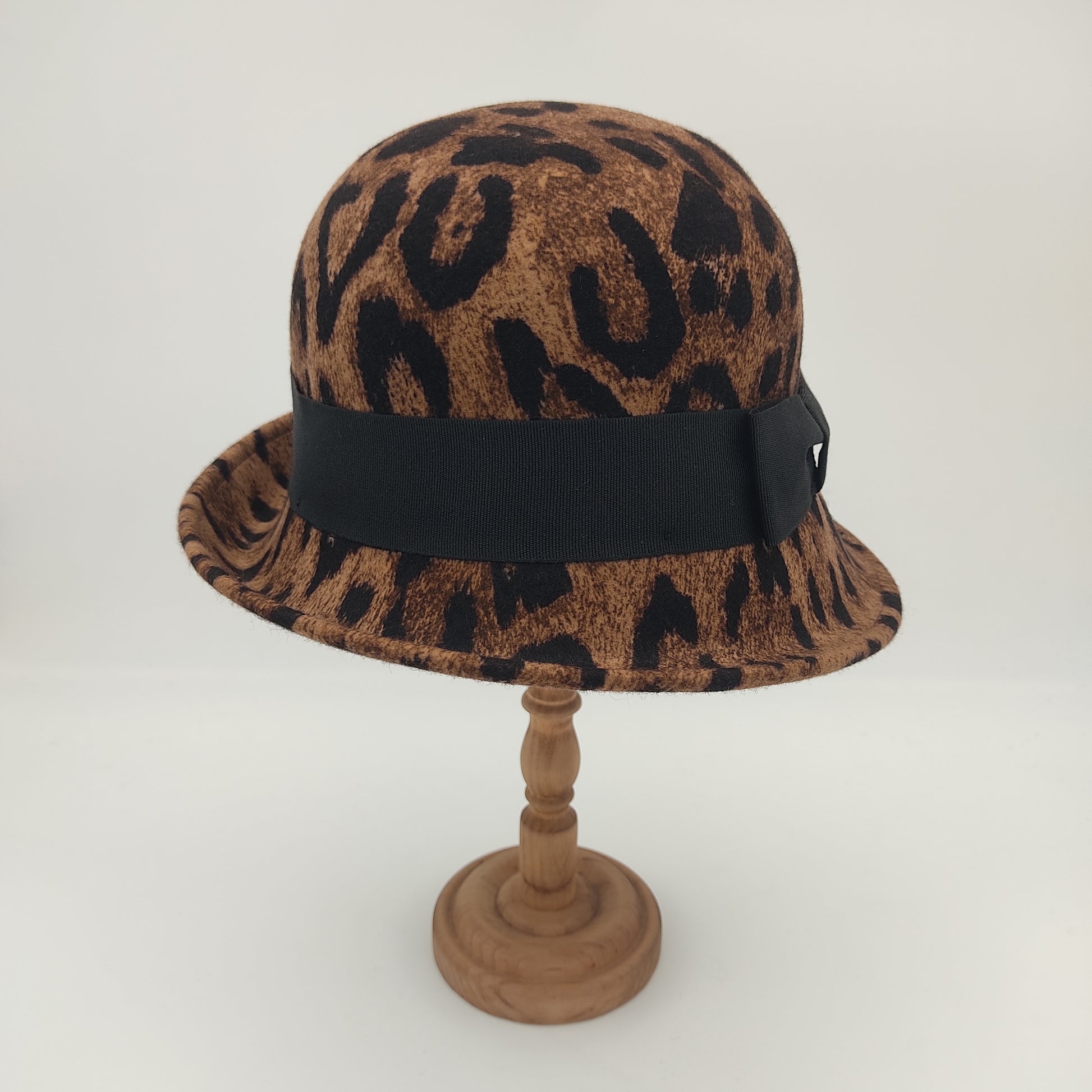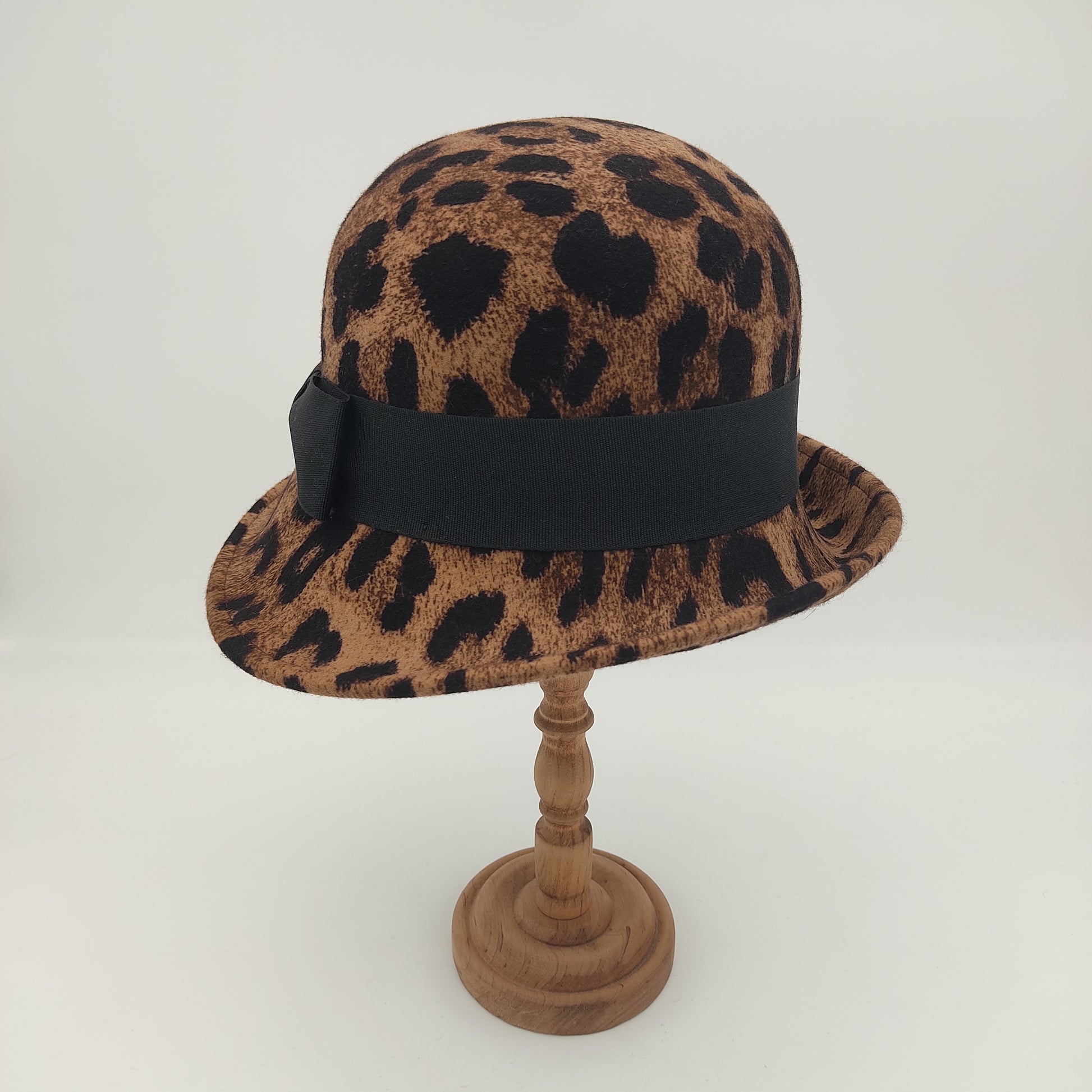 La testa rotonda è impreziosita da una decorazione con doppio gros grain, uno tono su tono e l'altro a contrasto, che aggiunge un tocco di sofisticatezza, tranne per la versione maculata che ha una decorazione con gros grain e fiocco. Grazie al materiale resistente utilizzato, il cappello Cora unisce durabilità e stile, rappresentando una scelta ideale per chi cerca un accessorio elegante e di qualità.