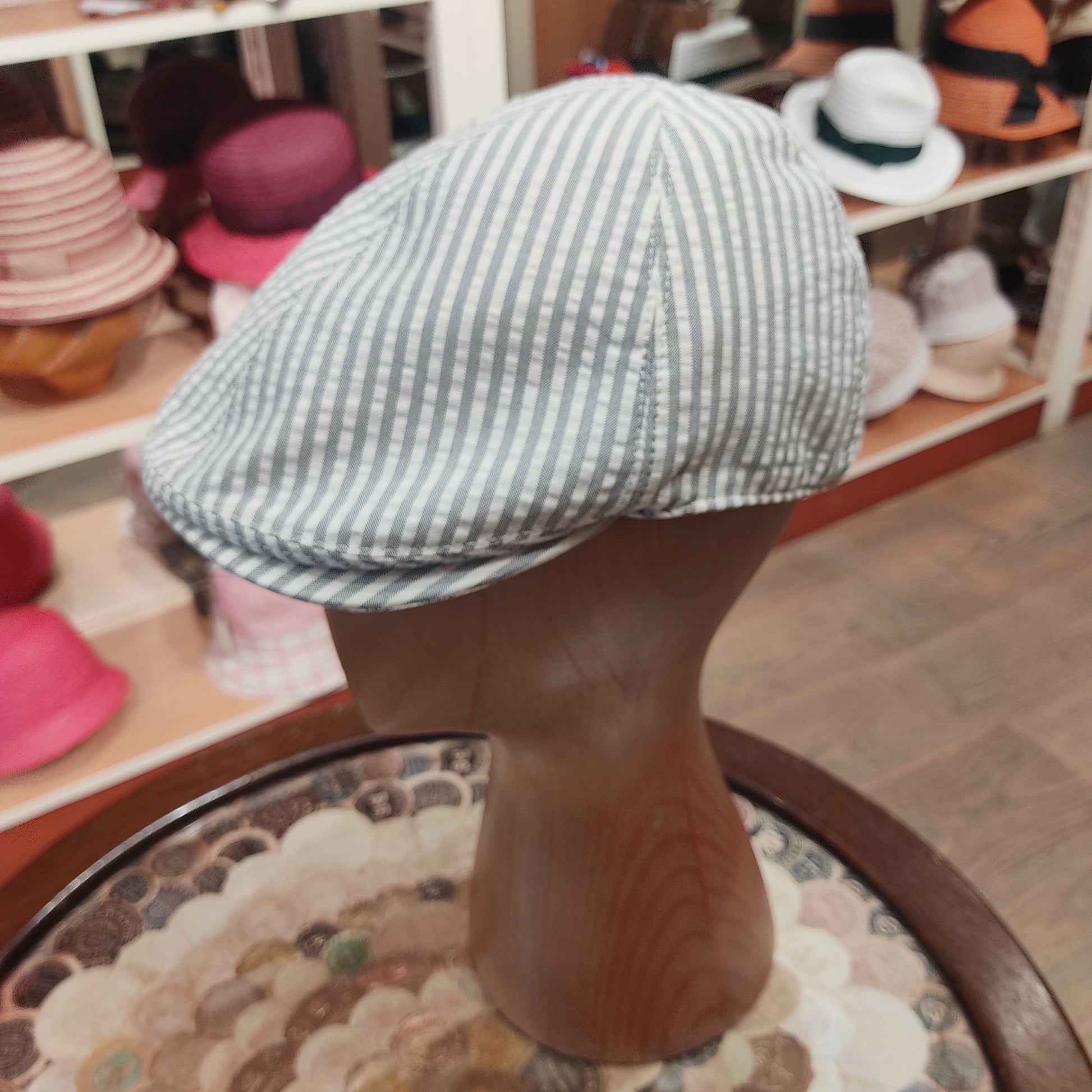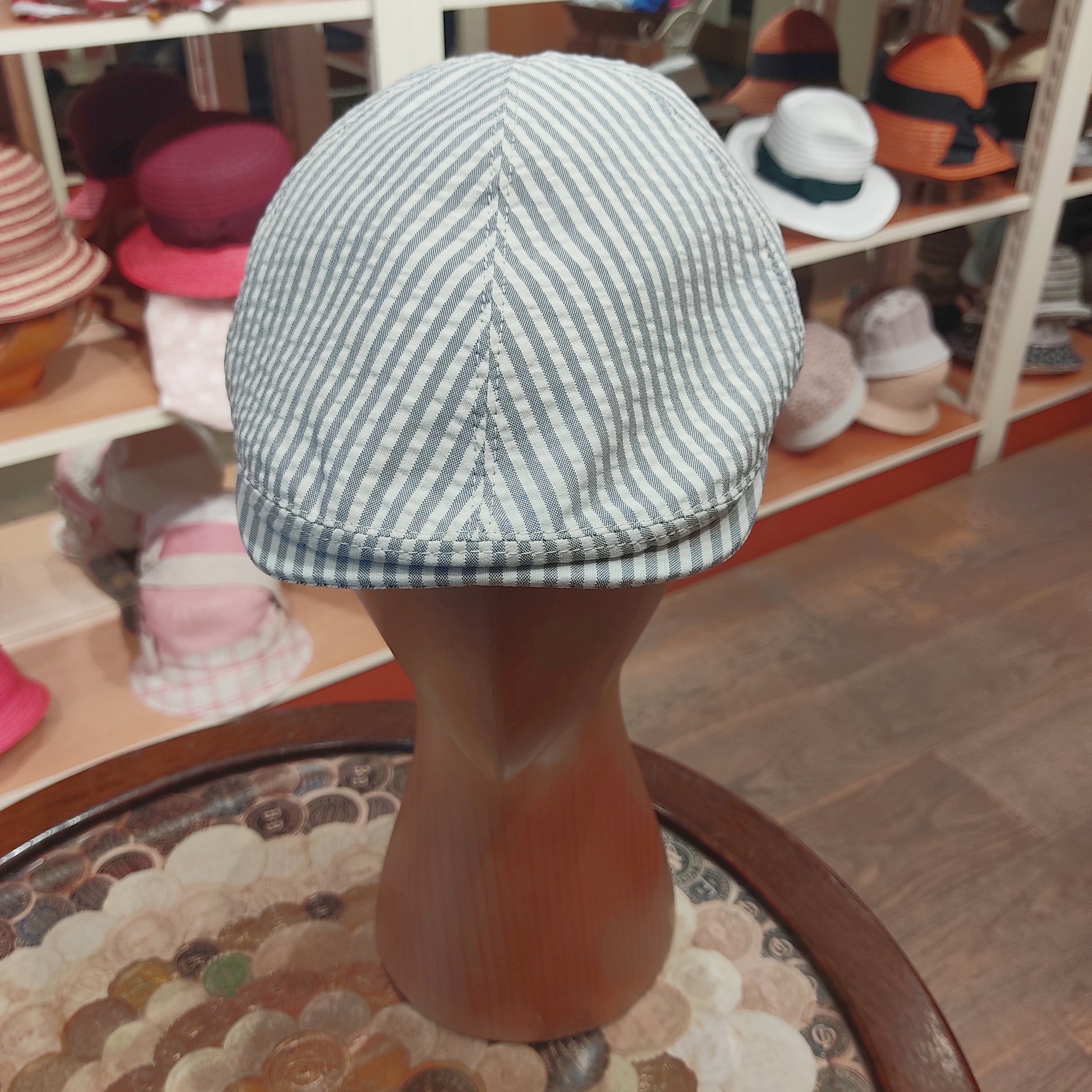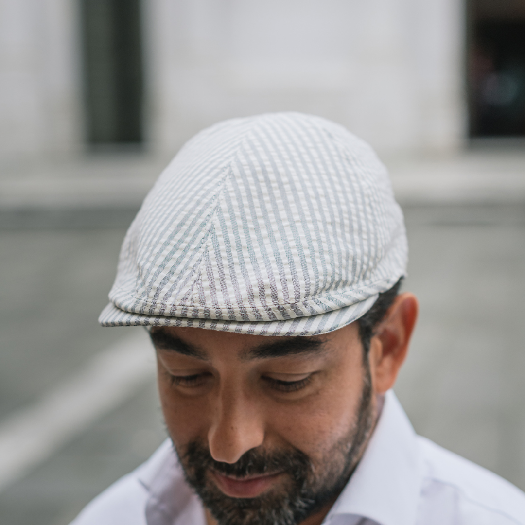 Design: Il cappello estivo "Dunnet Riga" è un modello di coppola perfetto per uno stile casual e contemporaneo. La forma classica con un tessuto rigato naturale e grigio dona un tocco di originalità e dinamicità al cappello, mentre la visiera corta lo rende ideale per proteggere gli occhi dal sole.