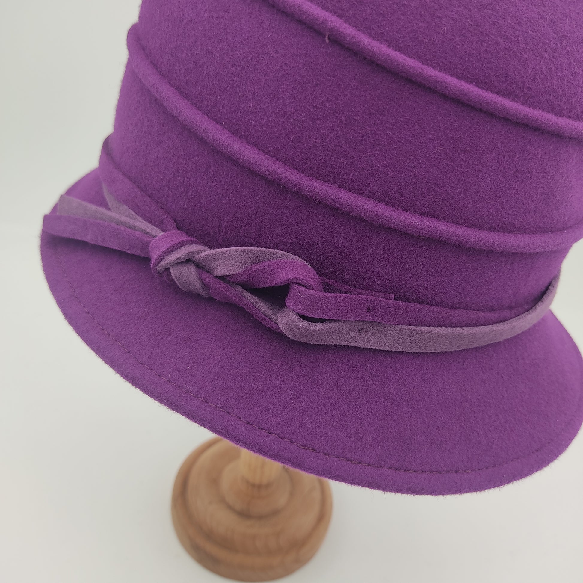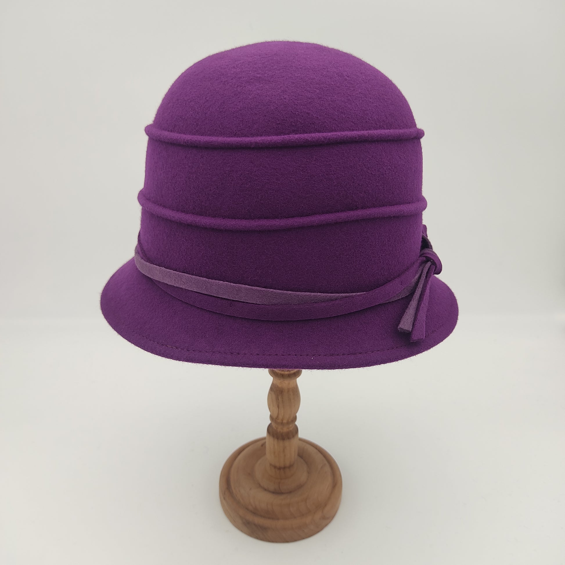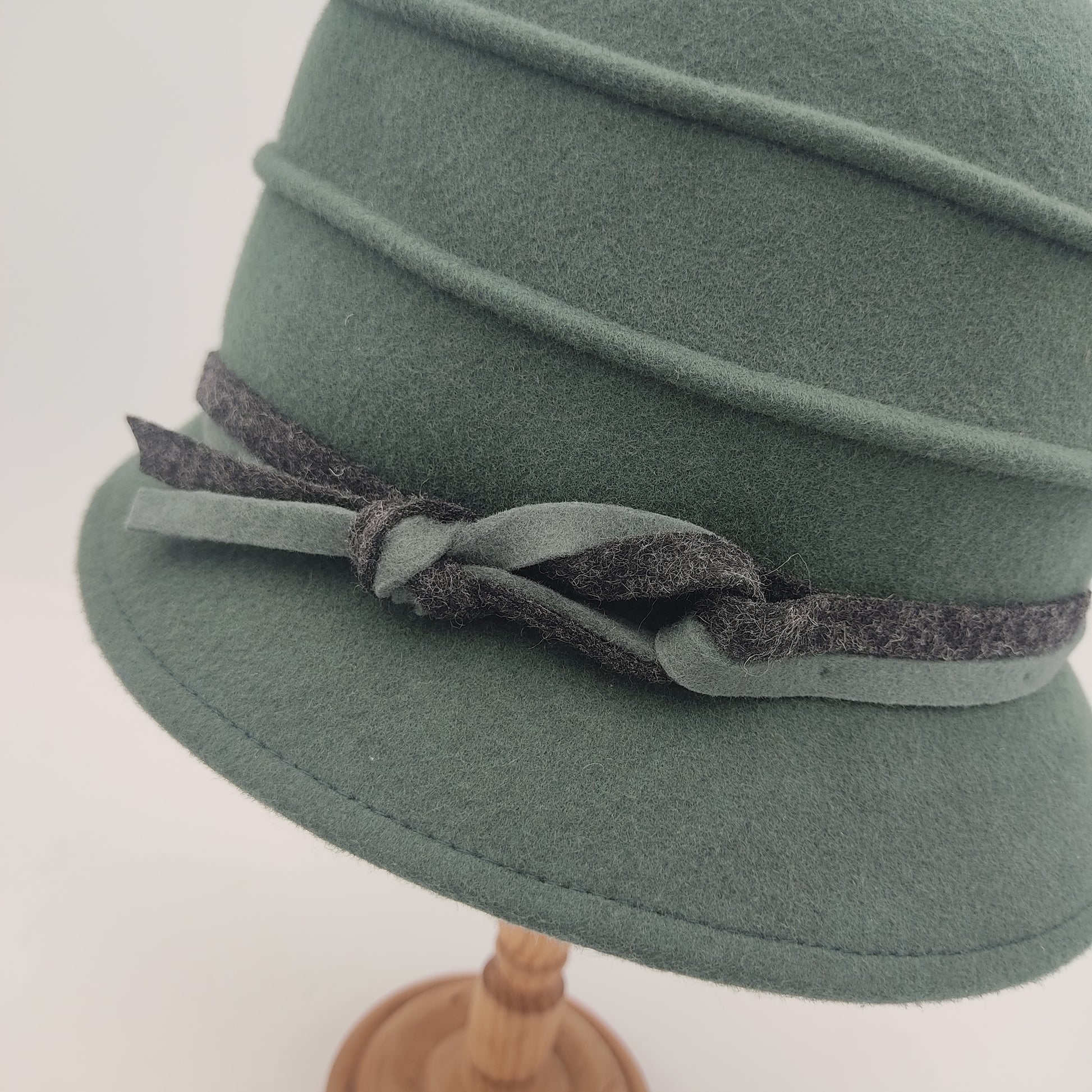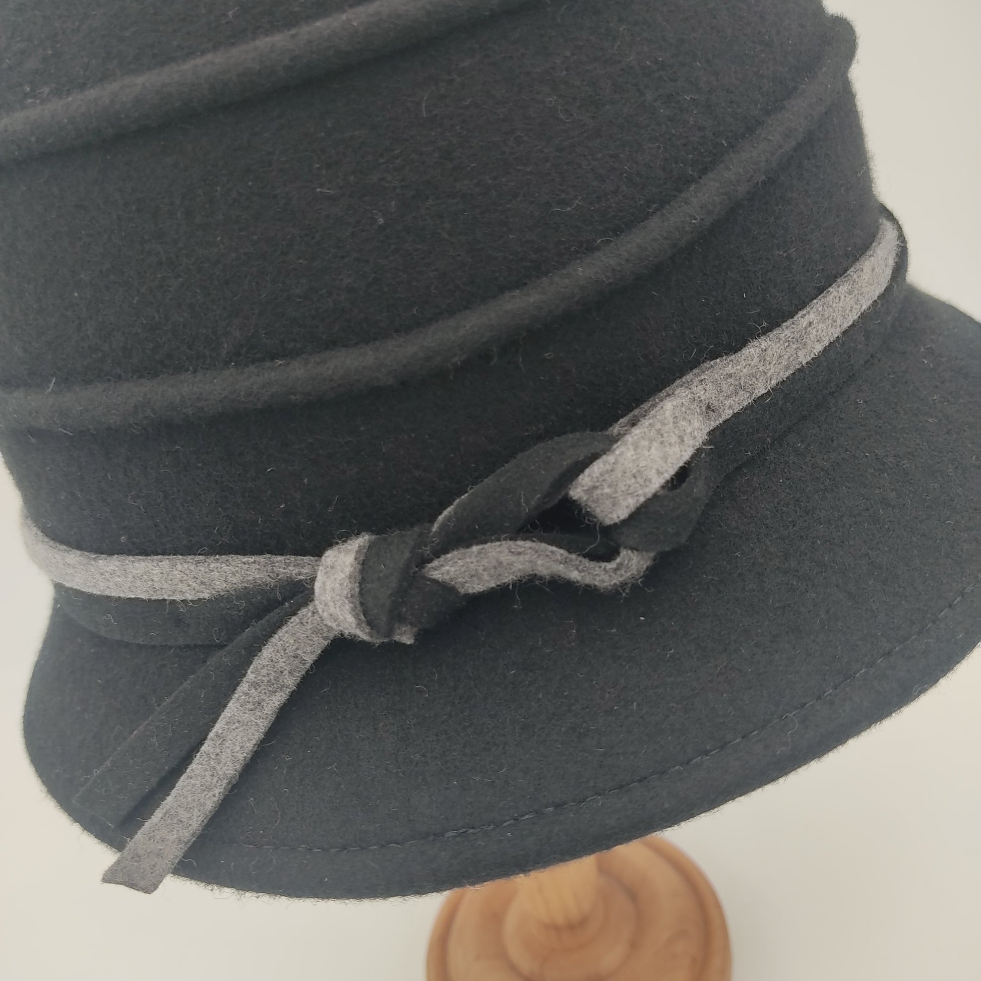 Edith è un elegante cappello da donna in stile cloche, realizzato in 100% feltro di lana. Questo cappello Made in Italy si distingue per la sua forma caratteristica con una falda spiovente di 5 cm e una testa rotonda. La decorazione è composta da due cordini in feltro intrecciati sul lato, uno tono su tono e l'altro a contrasto, che aggiungono un tocco di raffinatezza al design. Il materiale resistente garantisce durabilità e qualità, rendendo Edith un accessorio sofisticato e pratico per completare qualsiasi outfit elegante.