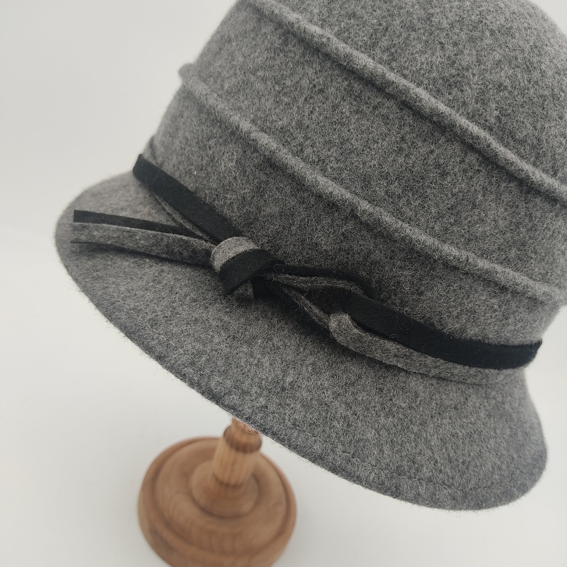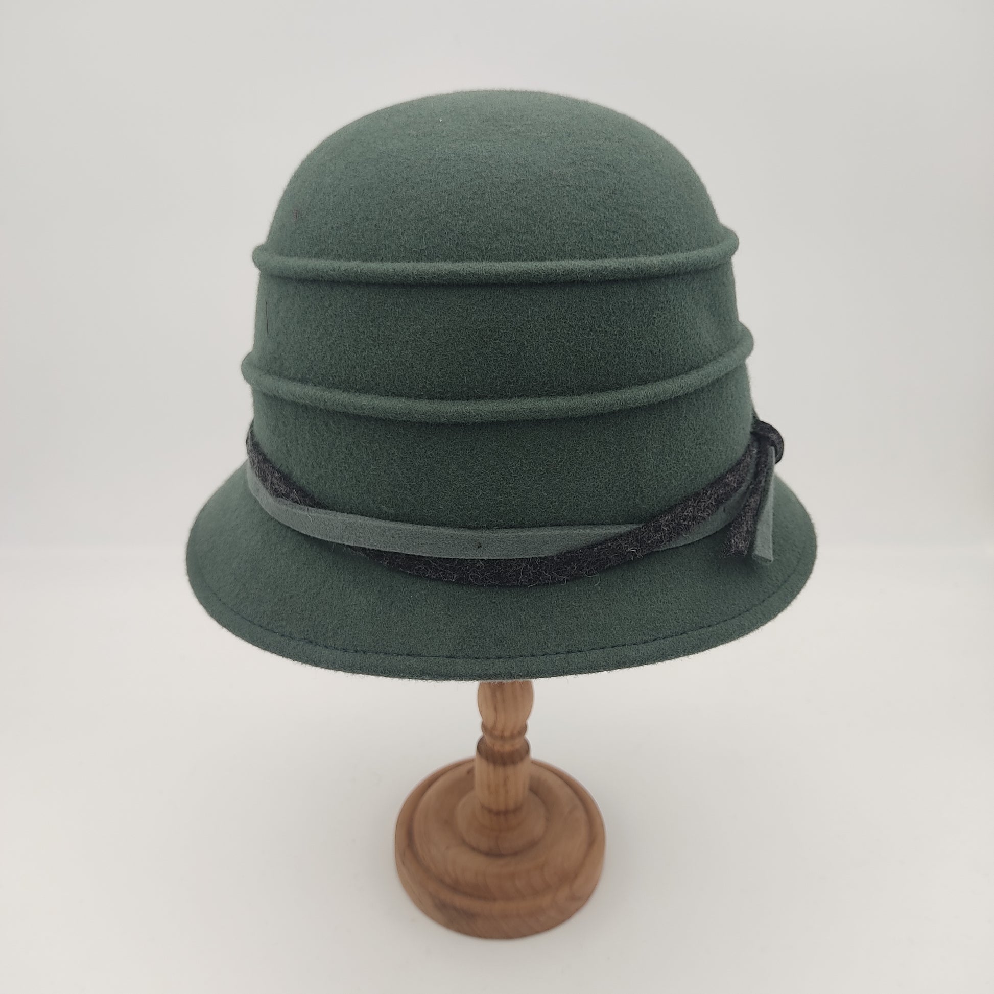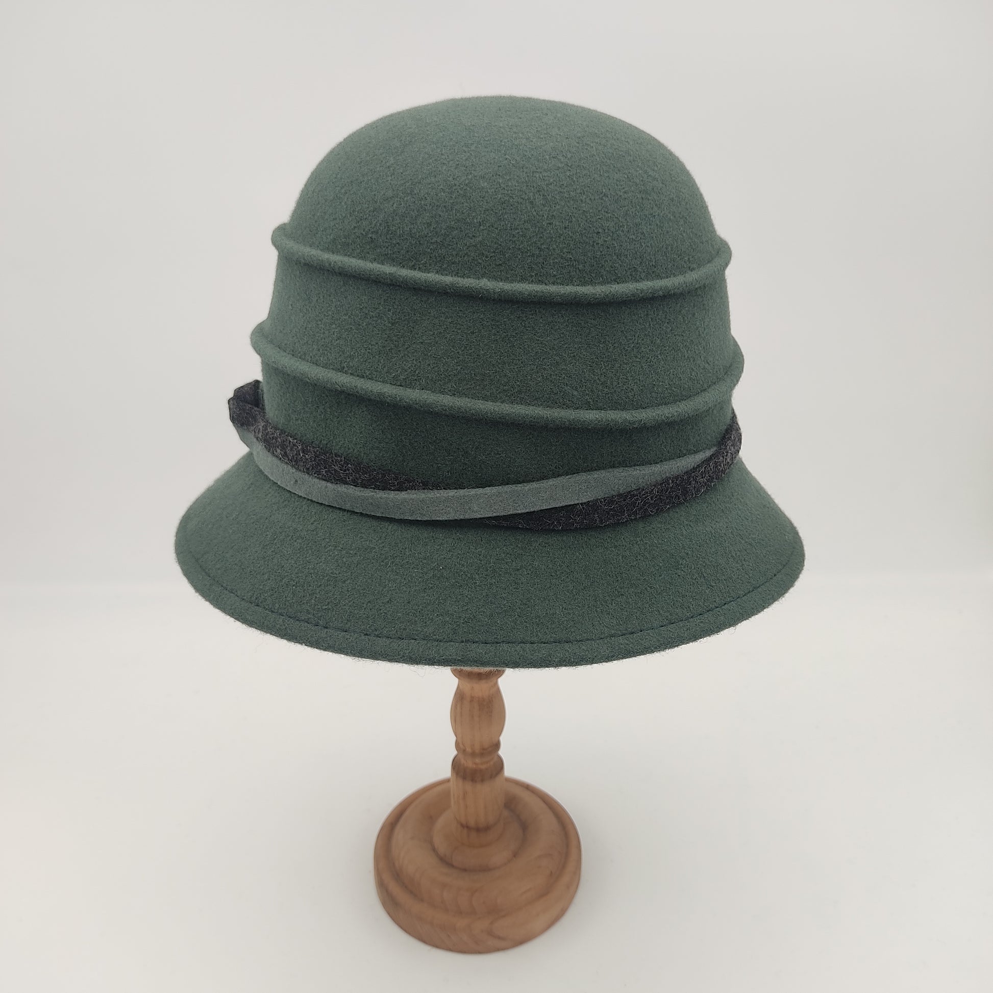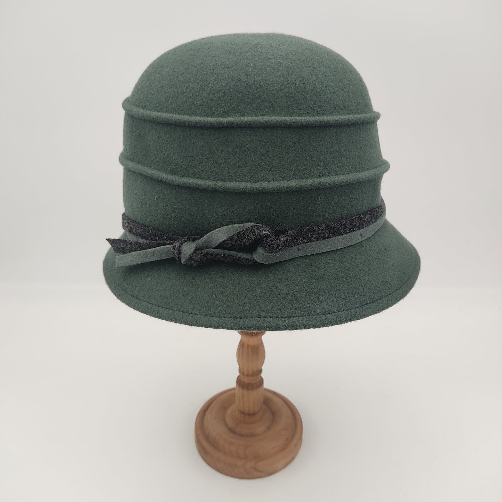 Edith è un elegante cappello da donna in stile cloche, realizzato in 100% feltro di lana. Questo cappello Made in Italy si distingue per la sua forma caratteristica con una falda spiovente di 5 cm e una testa rotonda. La decorazione è composta da due cordini in feltro intrecciati sul lato, uno tono su tono e l'altro a contrasto, che aggiungono un tocco di raffinatezza al design. Il materiale resistente garantisce durabilità e qualità, rendendo Edith un accessorio sofisticato e pratico per completare qualsiasi outfit elegante.