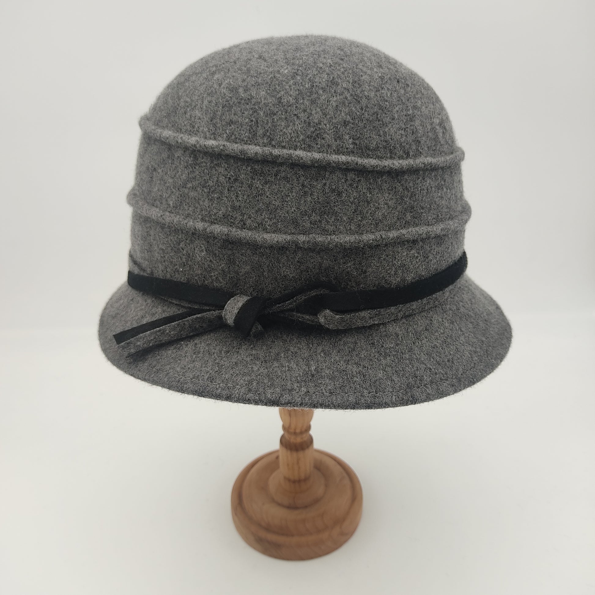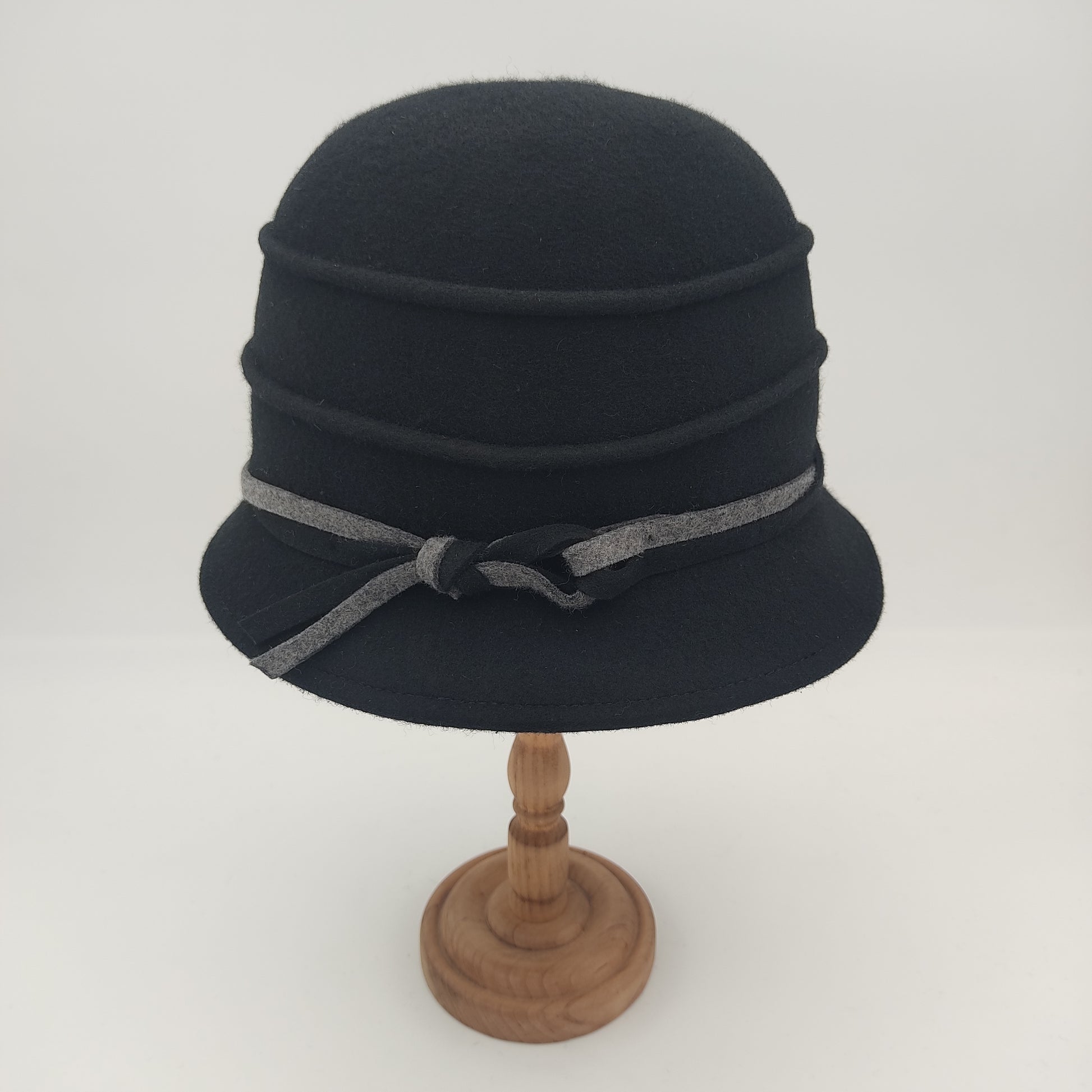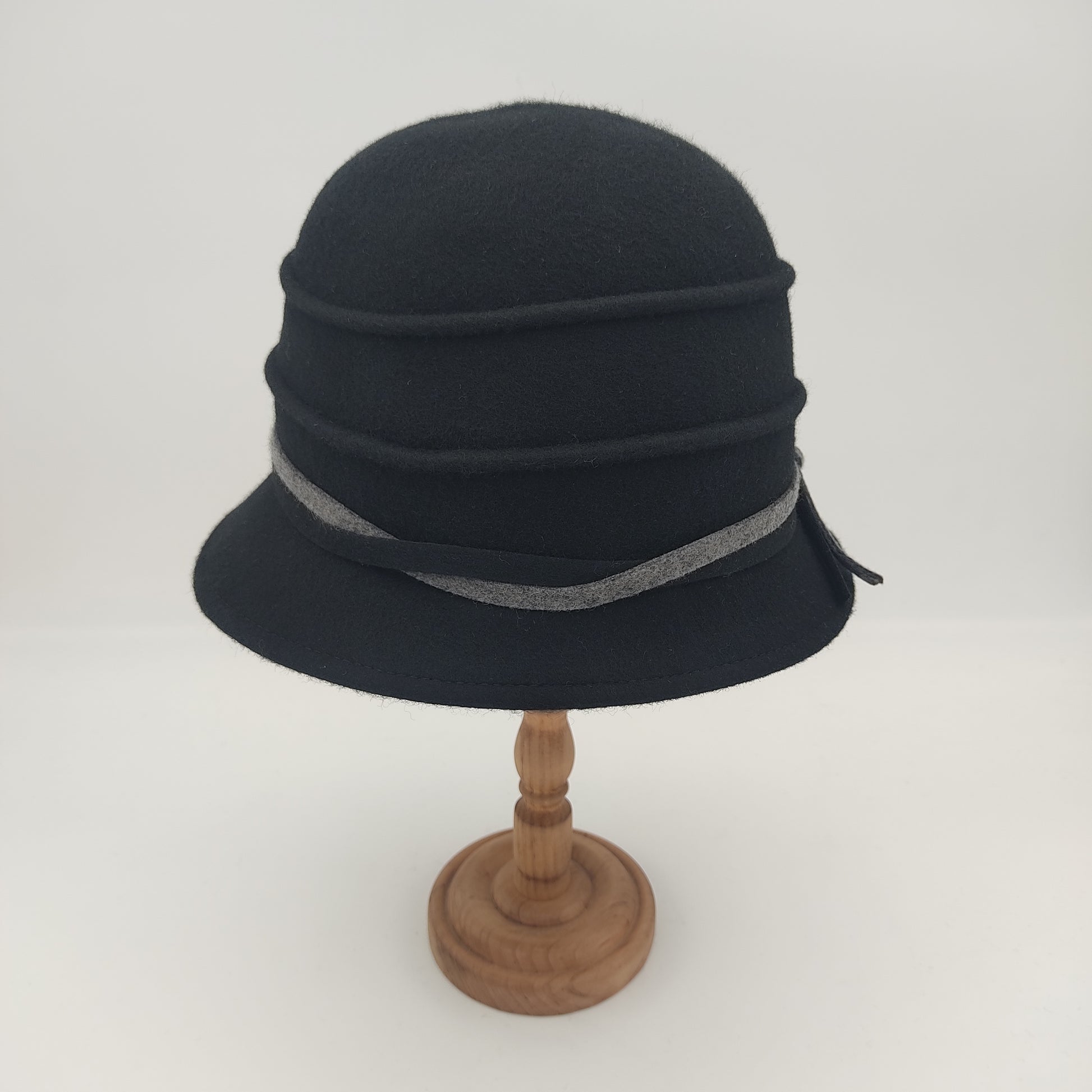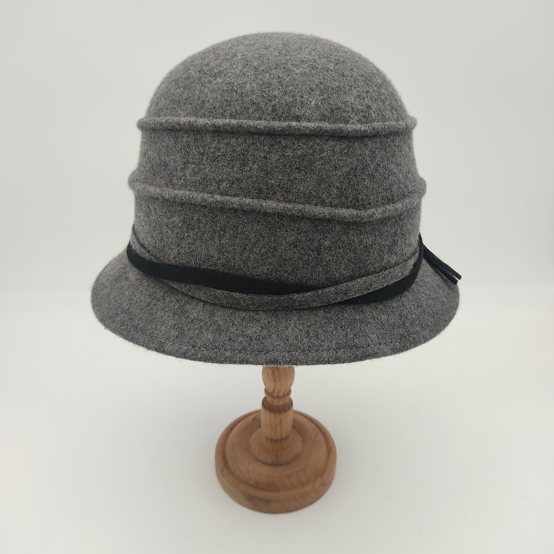 Edith è un elegante cappello da donna in stile cloche, realizzato in 100% feltro di lana. Questo cappello Made in Italy si distingue per la sua forma caratteristica con una falda spiovente di 5 cm e una testa rotonda. La decorazione è composta da due cordini in feltro intrecciati sul lato, uno tono su tono e l'altro a contrasto, che aggiungono un tocco di raffinatezza al design. Il materiale resistente garantisce durabilità e qualità, rendendo Edith un accessorio sofisticato e pratico per completare qualsiasi outfit elegante.