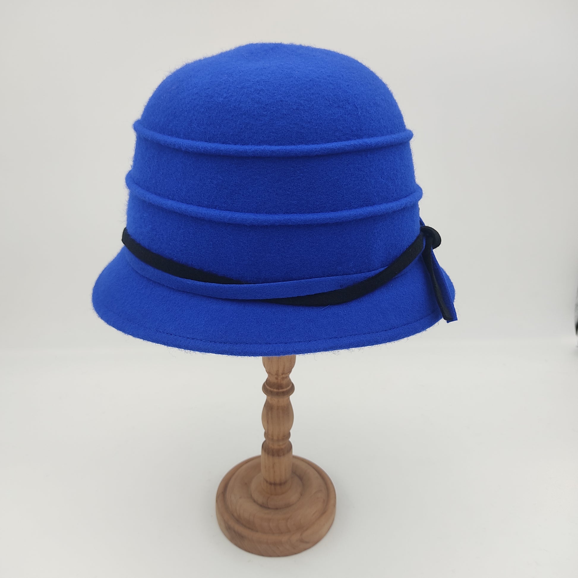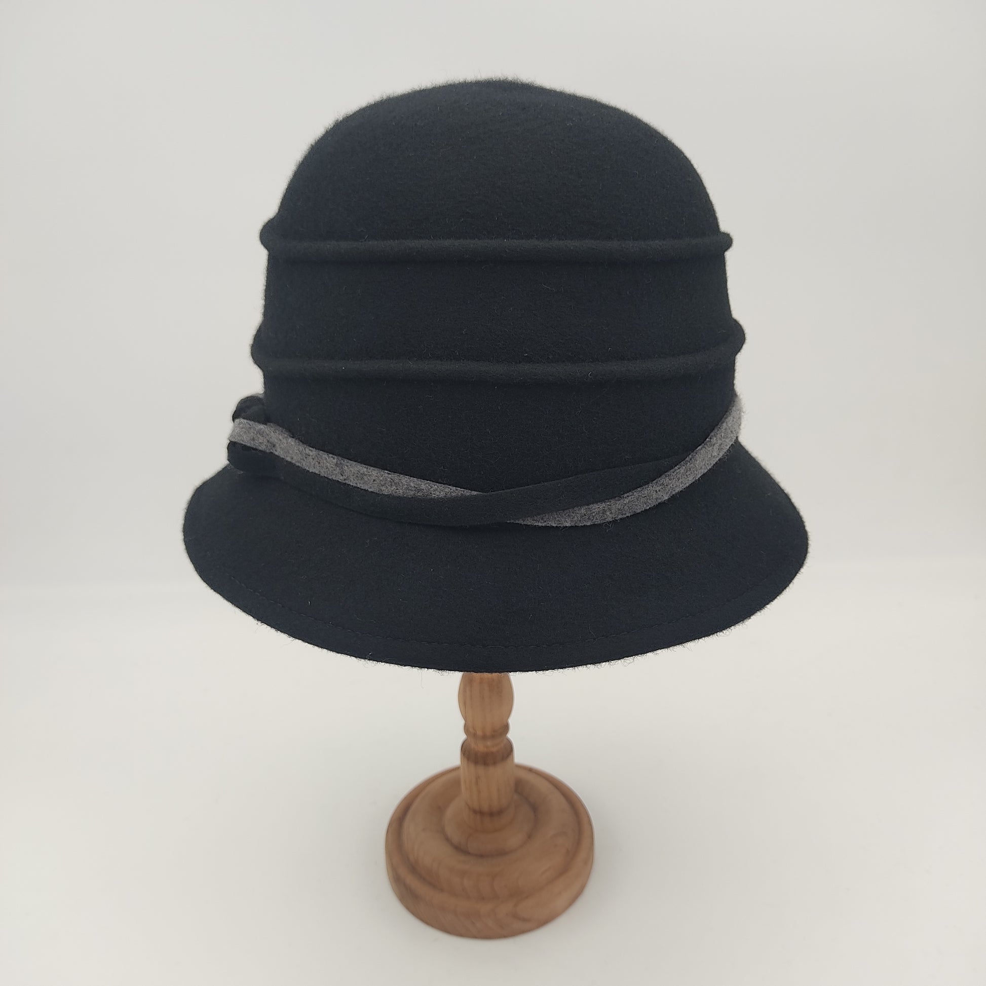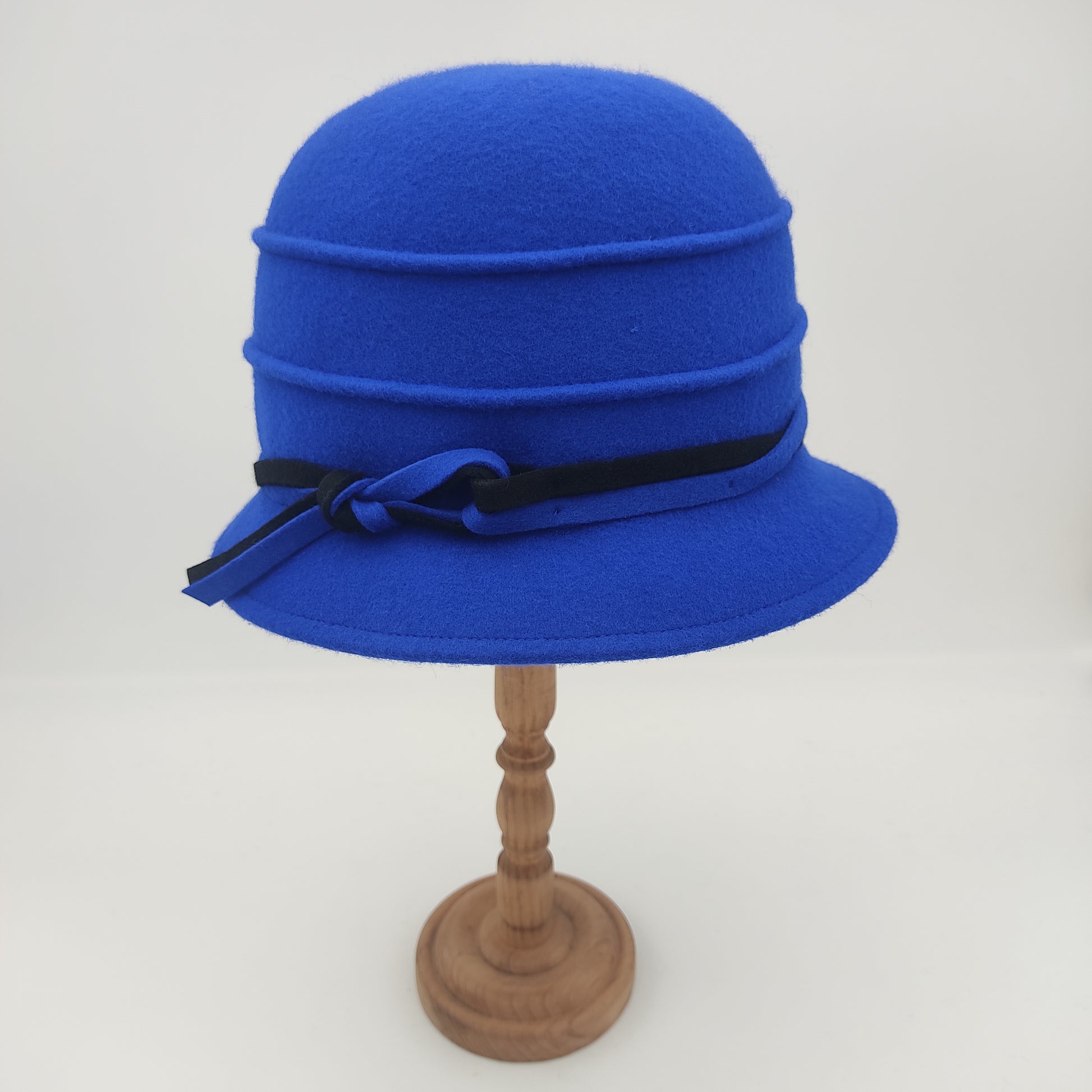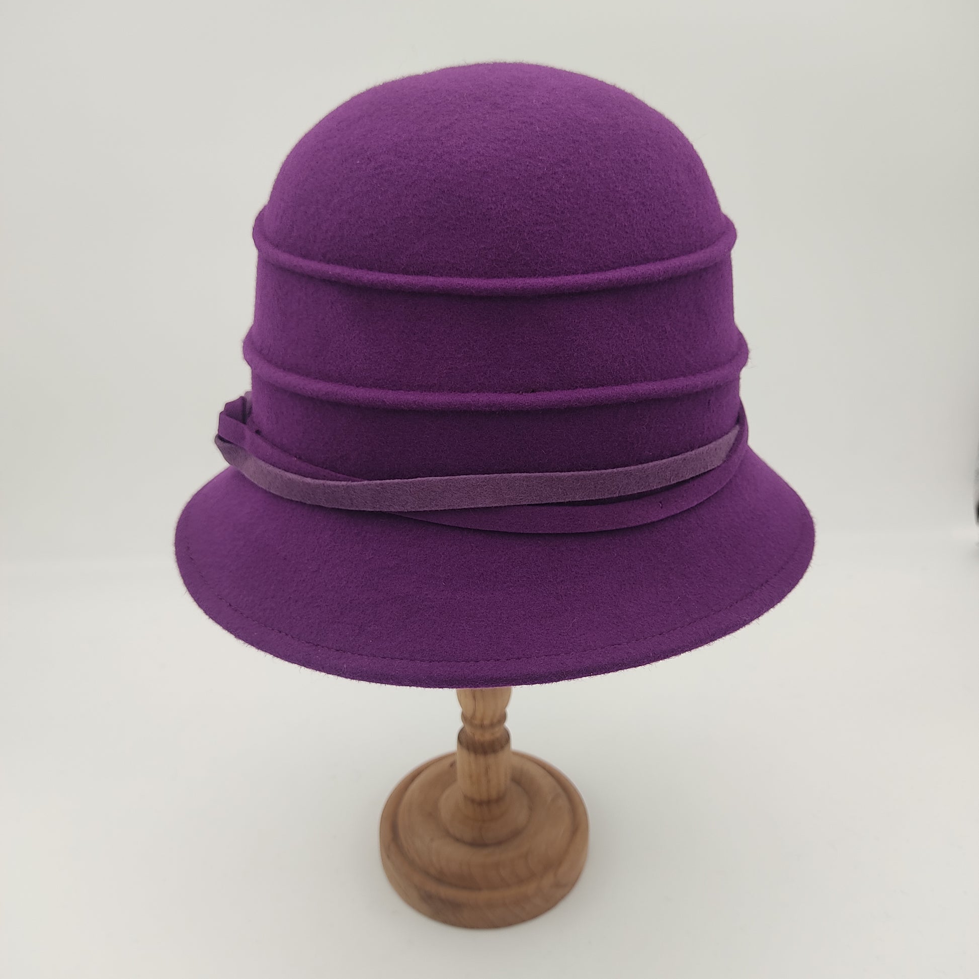 Edith è un elegante cappello da donna in stile cloche, realizzato in 100% feltro di lana. Questo cappello Made in Italy si distingue per la sua forma caratteristica con una falda spiovente di 5 cm e una testa rotonda. La decorazione è composta da due cordini in feltro intrecciati sul lato, uno tono su tono e l'altro a contrasto, che aggiungono un tocco di raffinatezza al design. Il materiale resistente garantisce durabilità e qualità, rendendo Edith un accessorio sofisticato e pratico per completare qualsiasi outfit elegante.