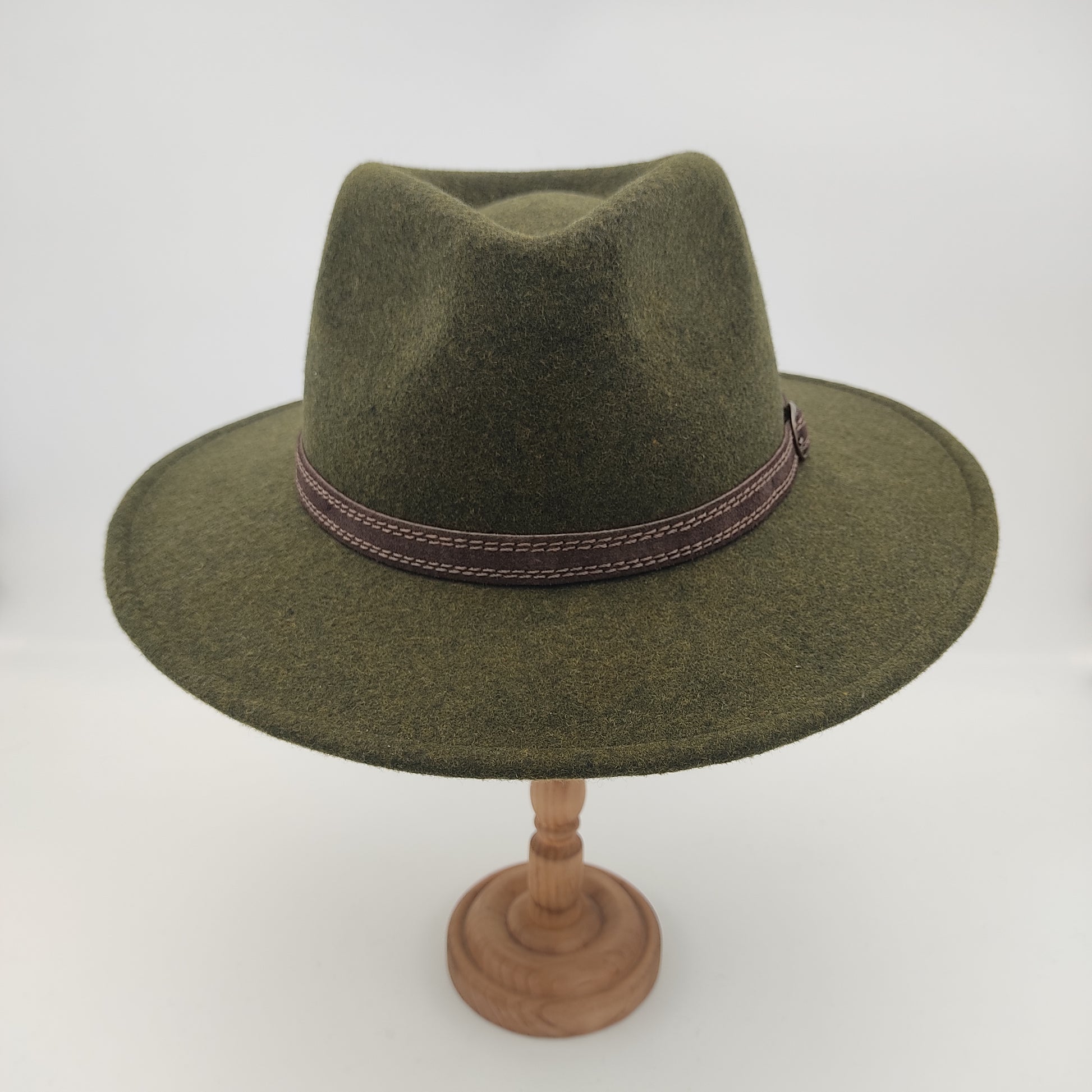 Il cappello Maremma è un elegante accessorio casual da uomo, realizzato in Italia con 100% feltro di lana di alta qualità. Questo cappello versatile presenta una falda di 7 cm e una testa a goccia con una corona medio alta di 10 cm ed è impreziosito da un cinturino decorativo a contrasto, che aggiunge un tocco di stile unico.