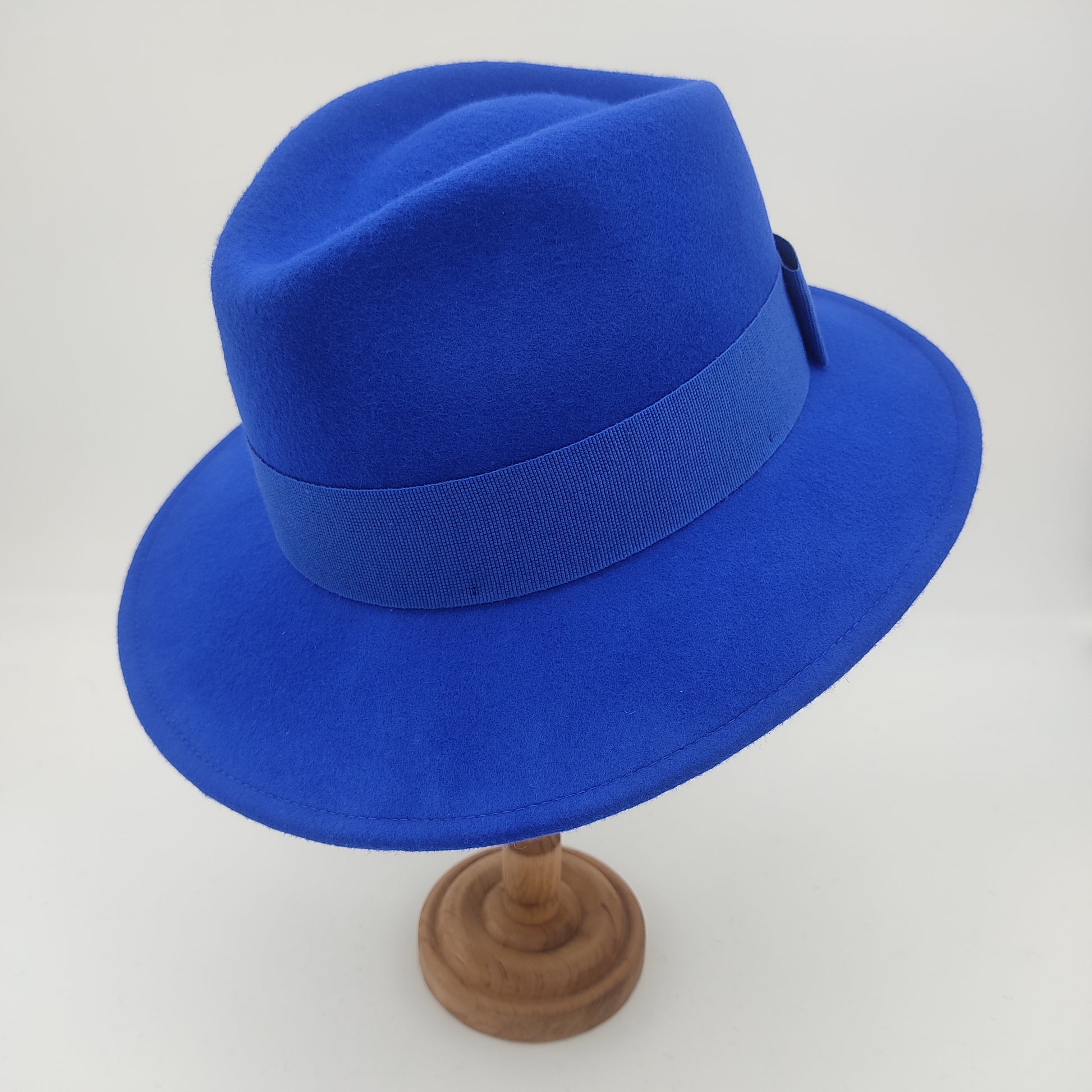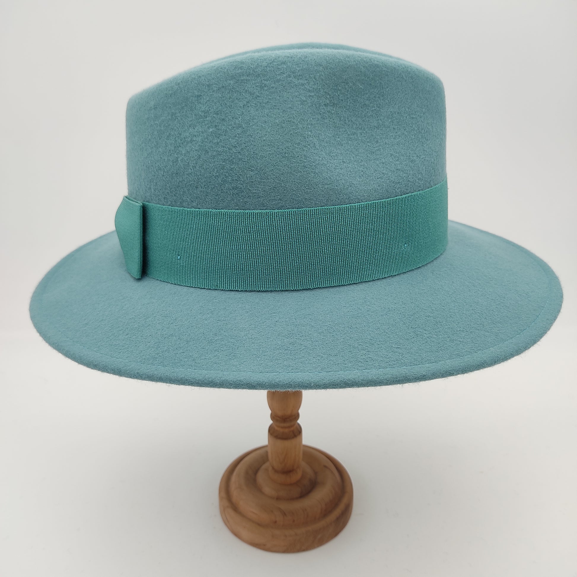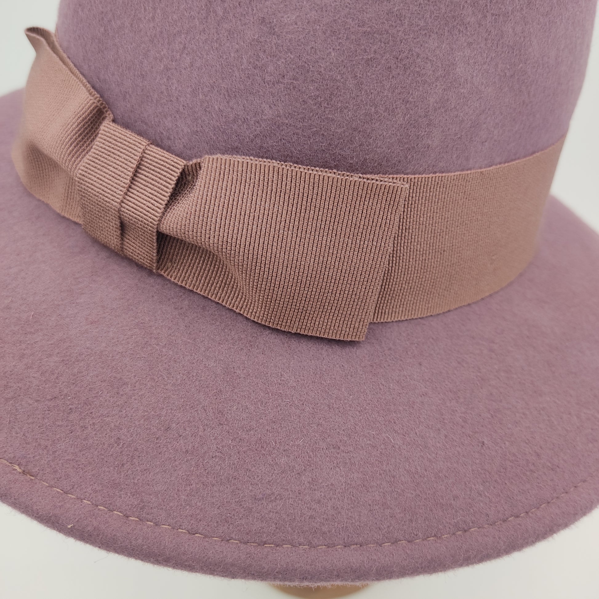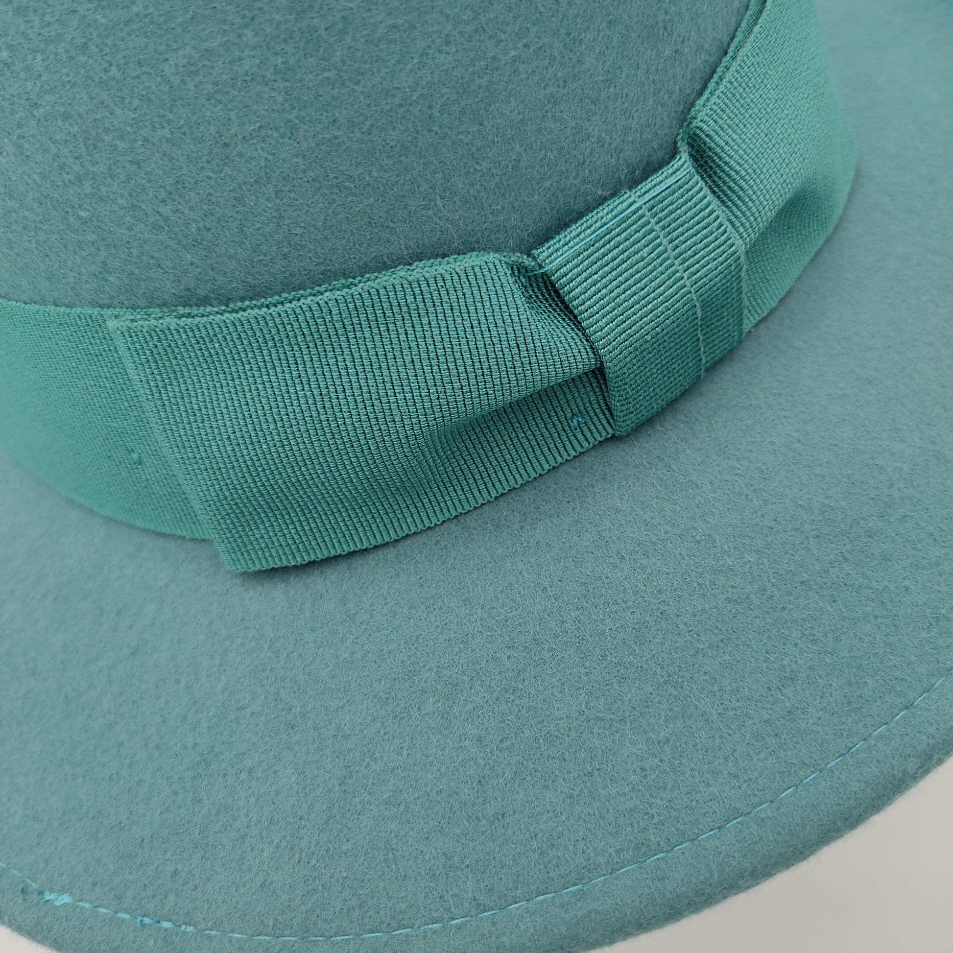 Realizzato in Italia con feltro di lana al 100%, Norma vanta una falda larga 7 cm leggermente spiovente che conferisce un'elegante silhouette al cappello. La testa a goccia si adatta perfettamente alla forma del capo, mentre la decorazione con gros grain tono su tono di 4 cm e il fiocco posteriore aggiungono un dettaglio raffinato.
