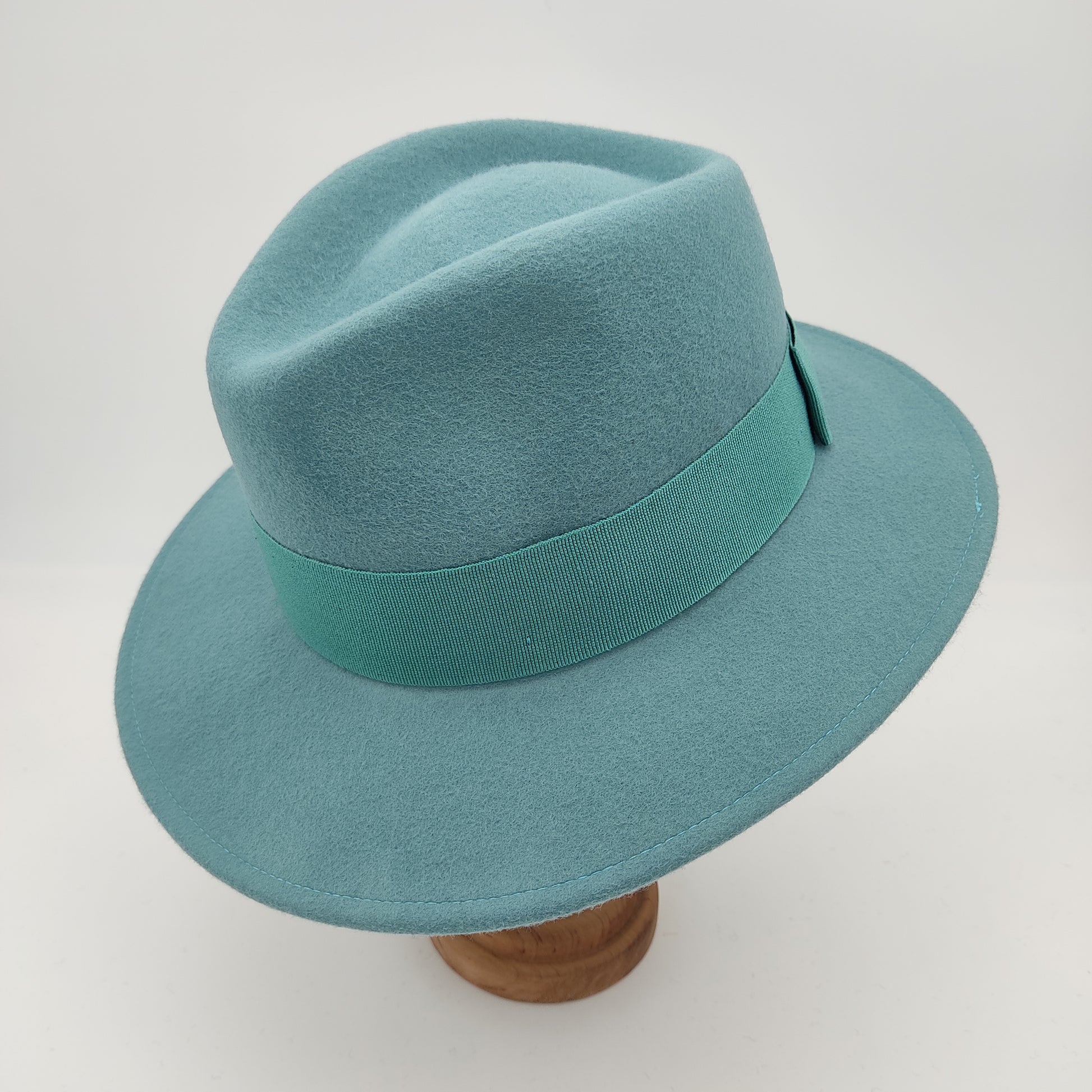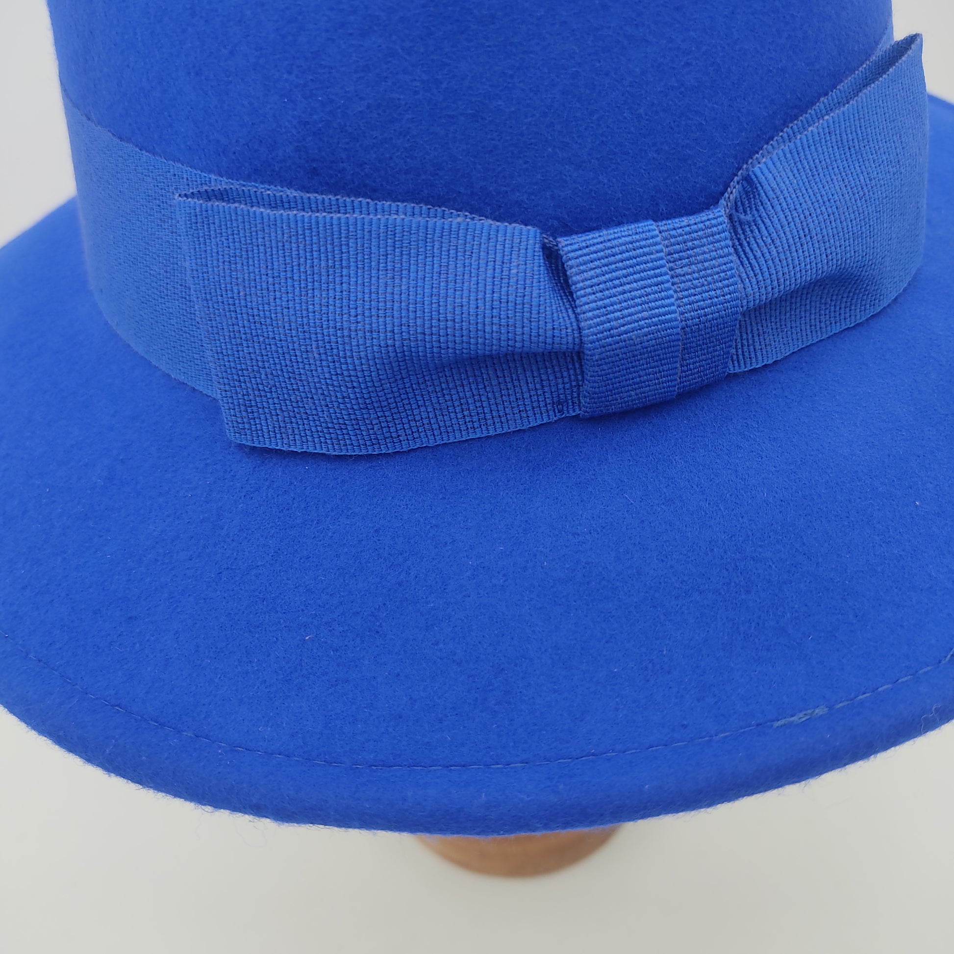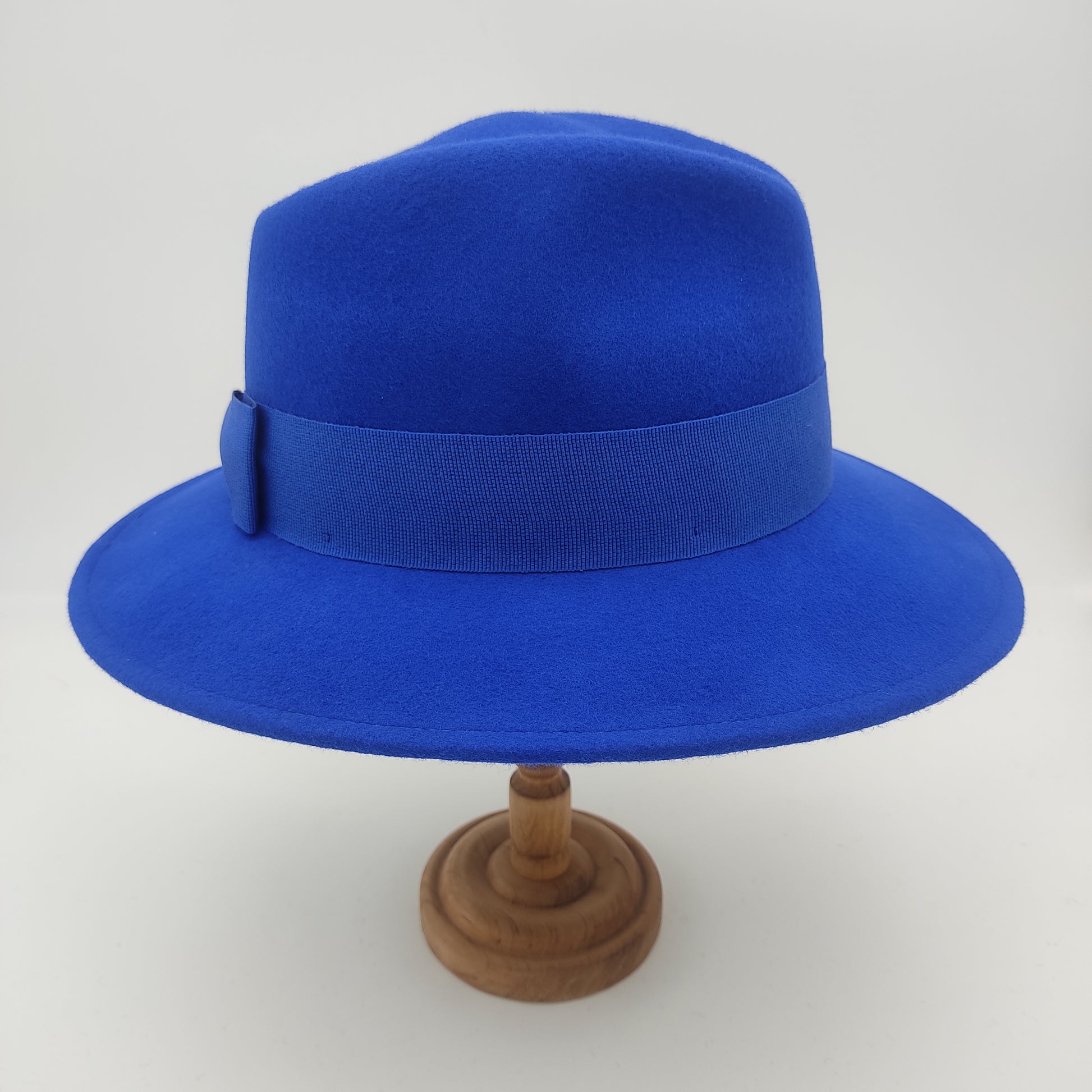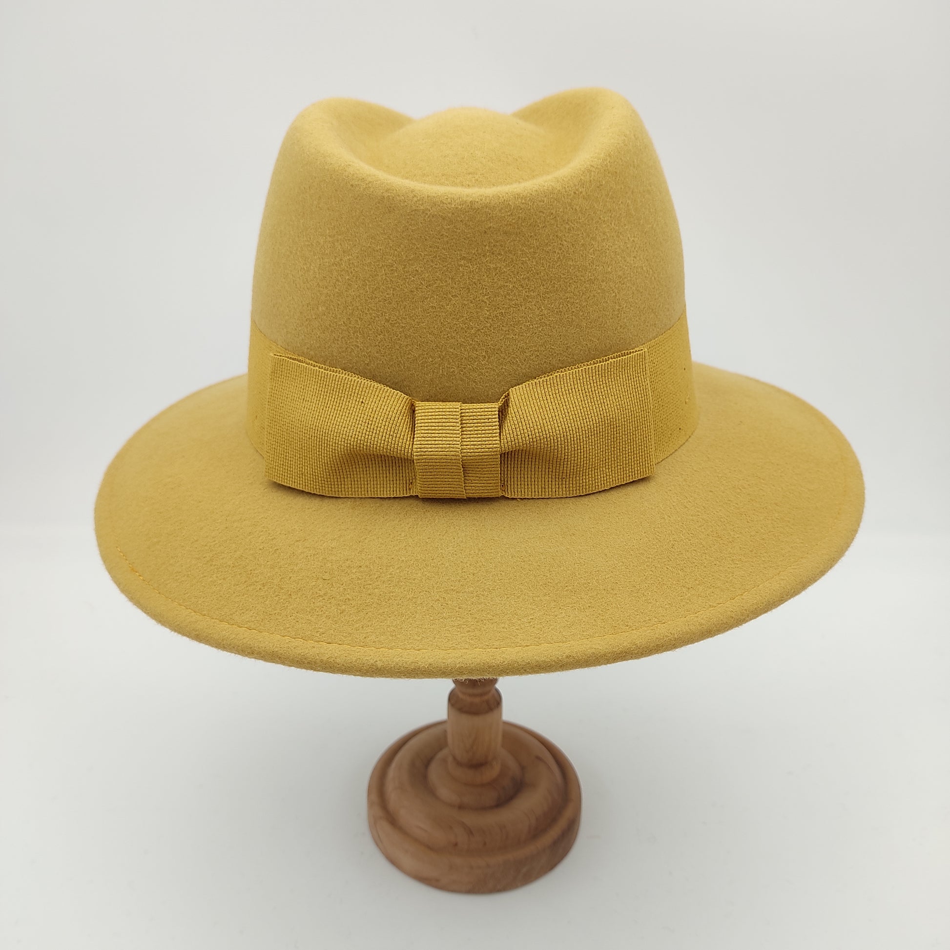 Realizzato in Italia con feltro di lana al 100%, Norma vanta una falda larga 7 cm leggermente spiovente che conferisce un'elegante silhouette al cappello. La testa a goccia si adatta perfettamente alla forma del capo, mentre la decorazione con gros grain tono su tono di 4 cm e il fiocco posteriore aggiungono un dettaglio raffinato.