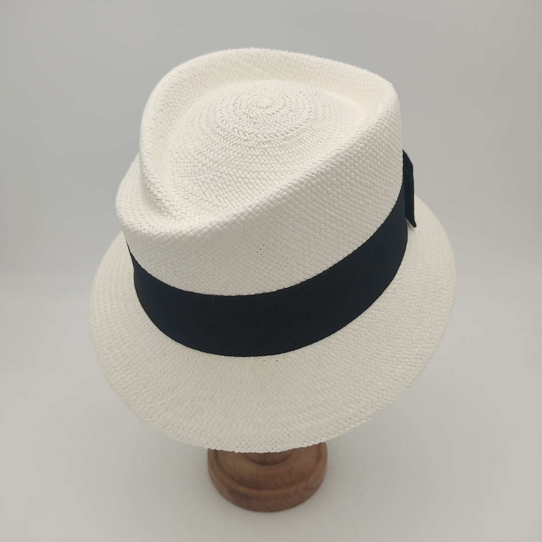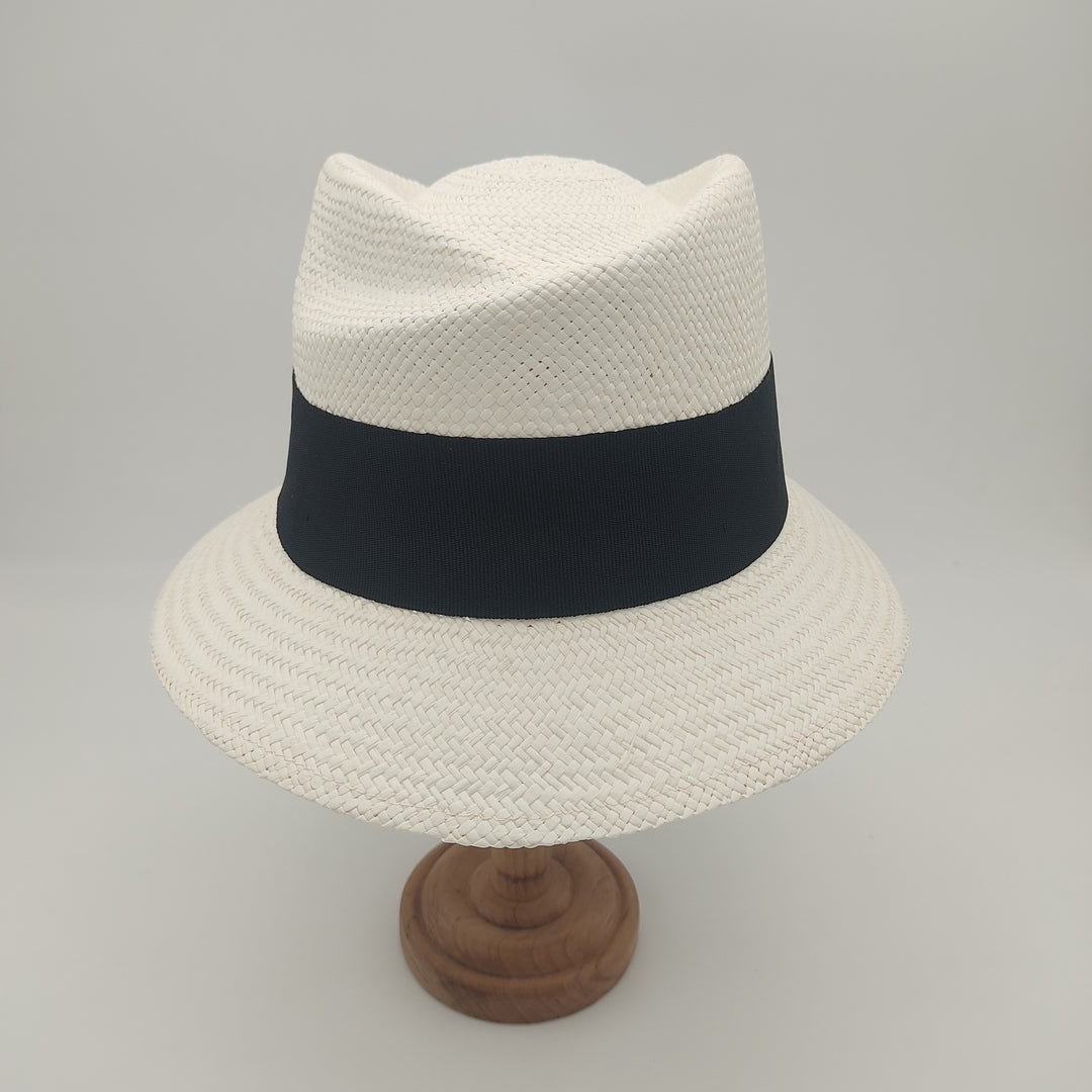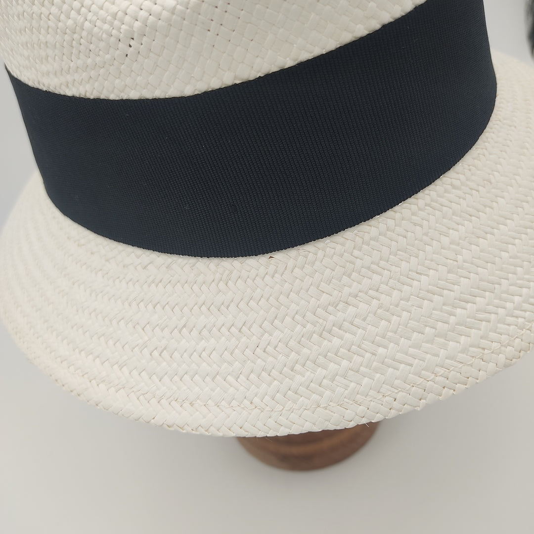 Il cappello è realizzato in panama, fatto a mano e tessuto a mano in Ecuador con i filamenti ricavati dalla pregiata palma toquilla, una testimonianza della sua qualità superiore. La corona si erge alta a 11 cm, e la falda misura 5 cm.