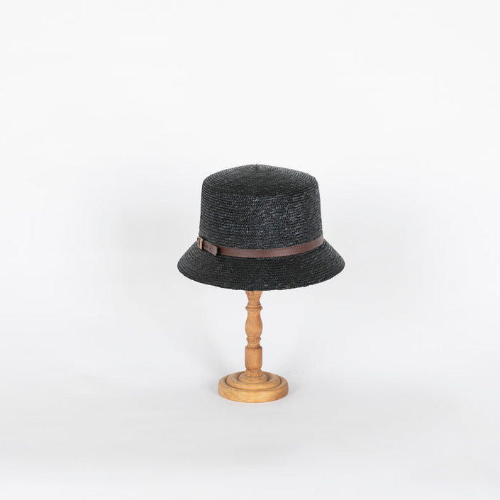 Materiale: Classico cappello pescatore realizzato in 100% paglia. Decorato un piccolo nastro in similpelle con fibbia. Abbiamo voluto giocare con i colori: disponibile in nero, blu bronzo e naturale.