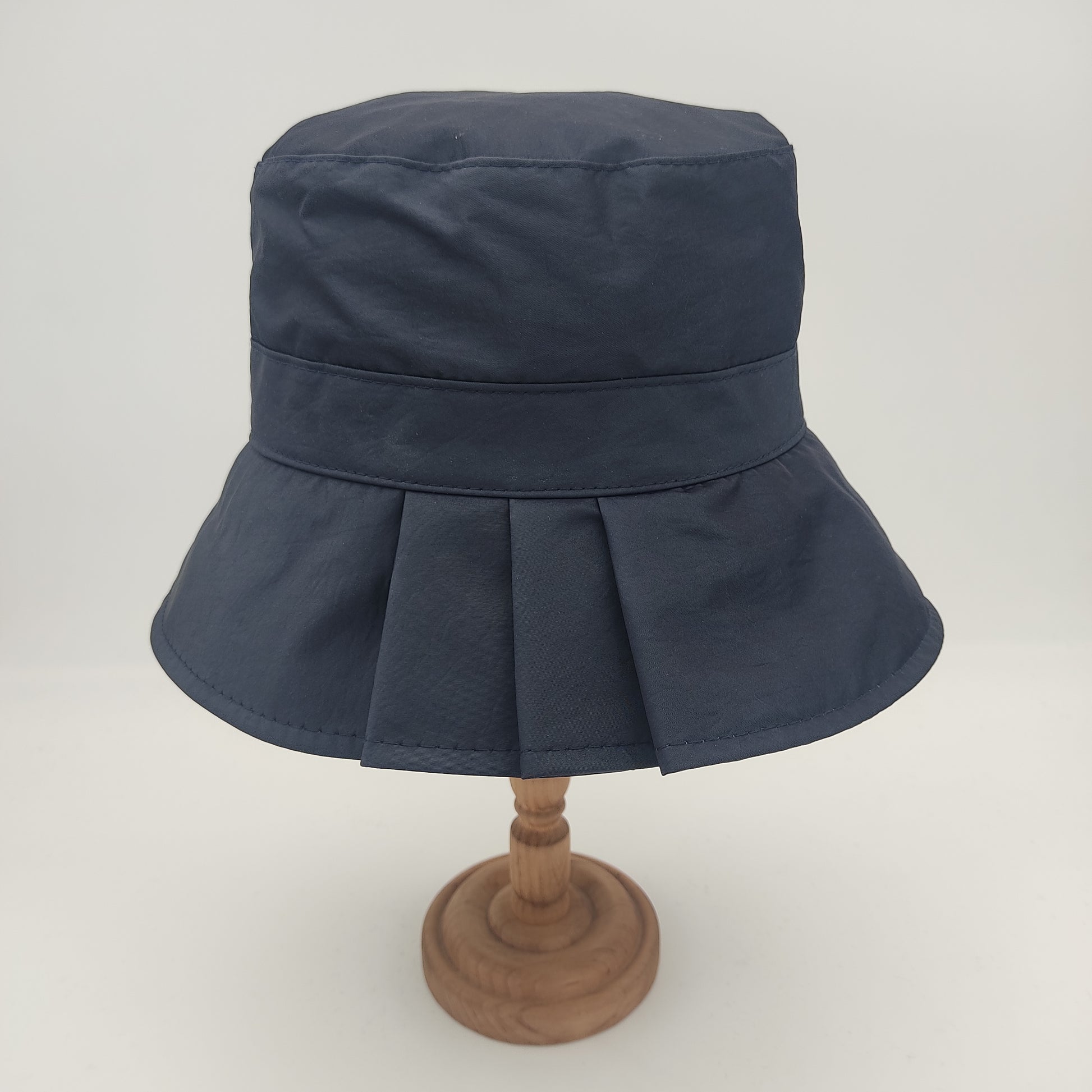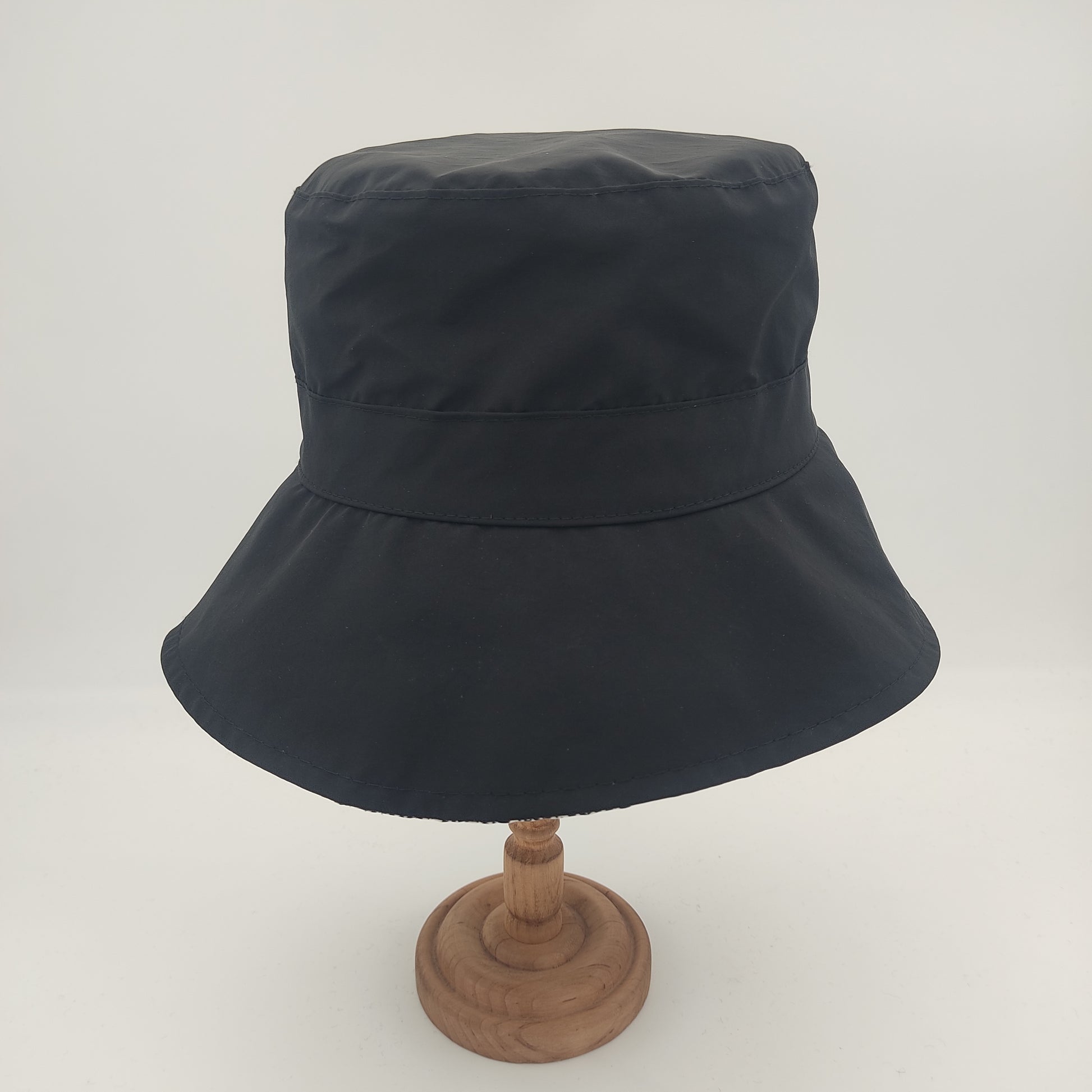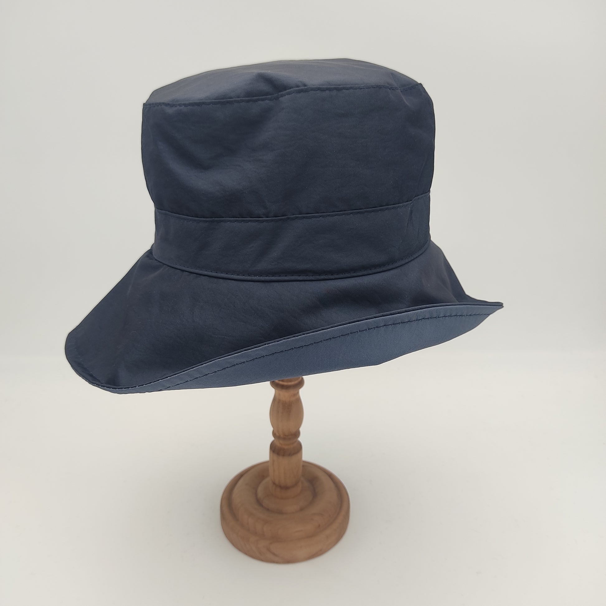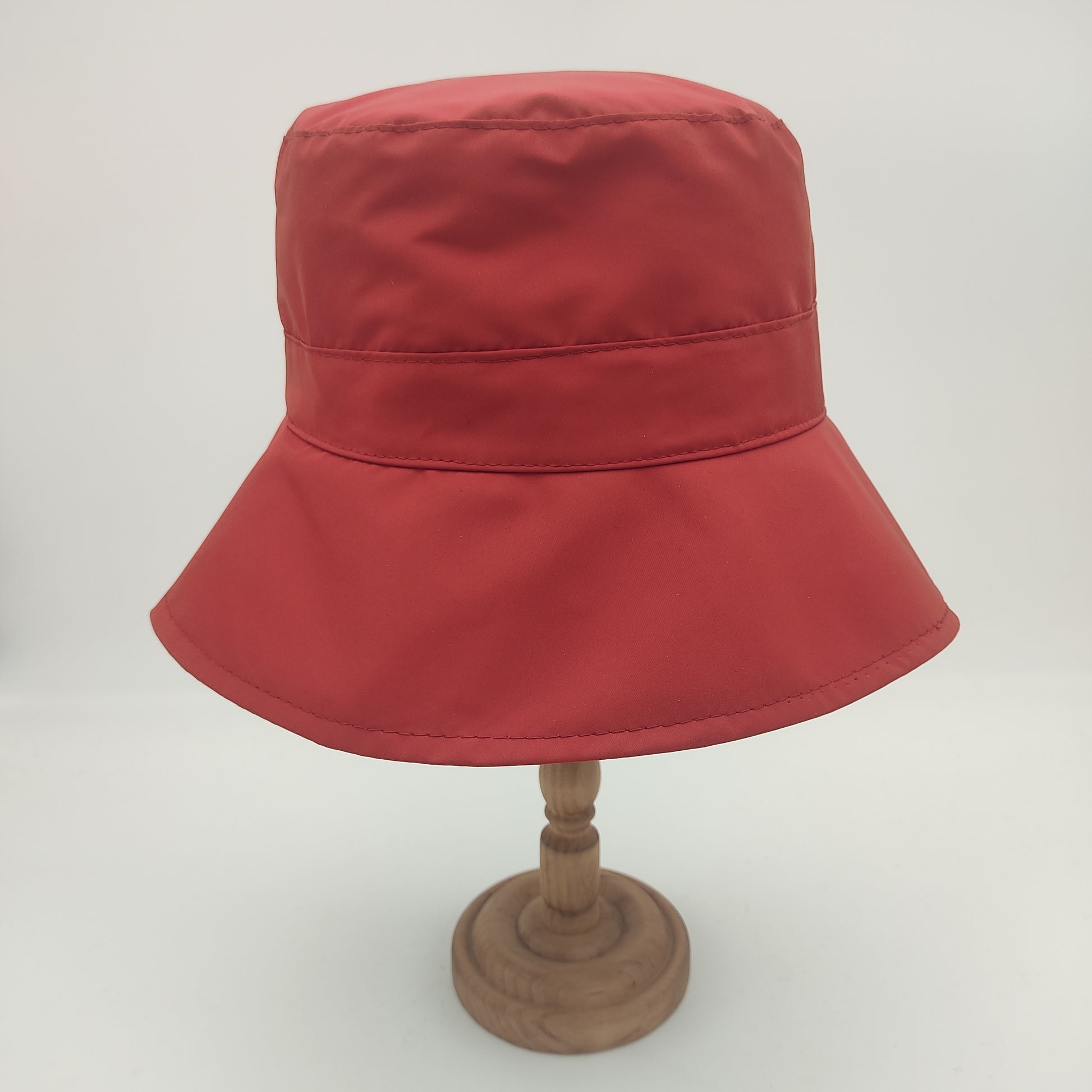 Il cappello Pioggia plisset è un modello da donna in stile pescatore con eleganti plisset laterali. Realizzato in un tessuto impermeabile composto da 58% poliammide e 42% poliestere, questo cappello Made in Italy si distingue per la sua corona squadrata alta 10 cm che garantisce un'ottima vestibilità, e una falda di 7.5 cm. La versione verde e quella blu presentano un sottotesa più chiaro, mentre nelle varianti nero e rosso il sottotesa è impreziosito da una raffinata fantasia pied de poule. Il materiale resistente e impermeabile, insieme alla pratica caratteristica di essere arrotolabile, lo rende perfetto per affrontare con stile le giornate di pioggia.
