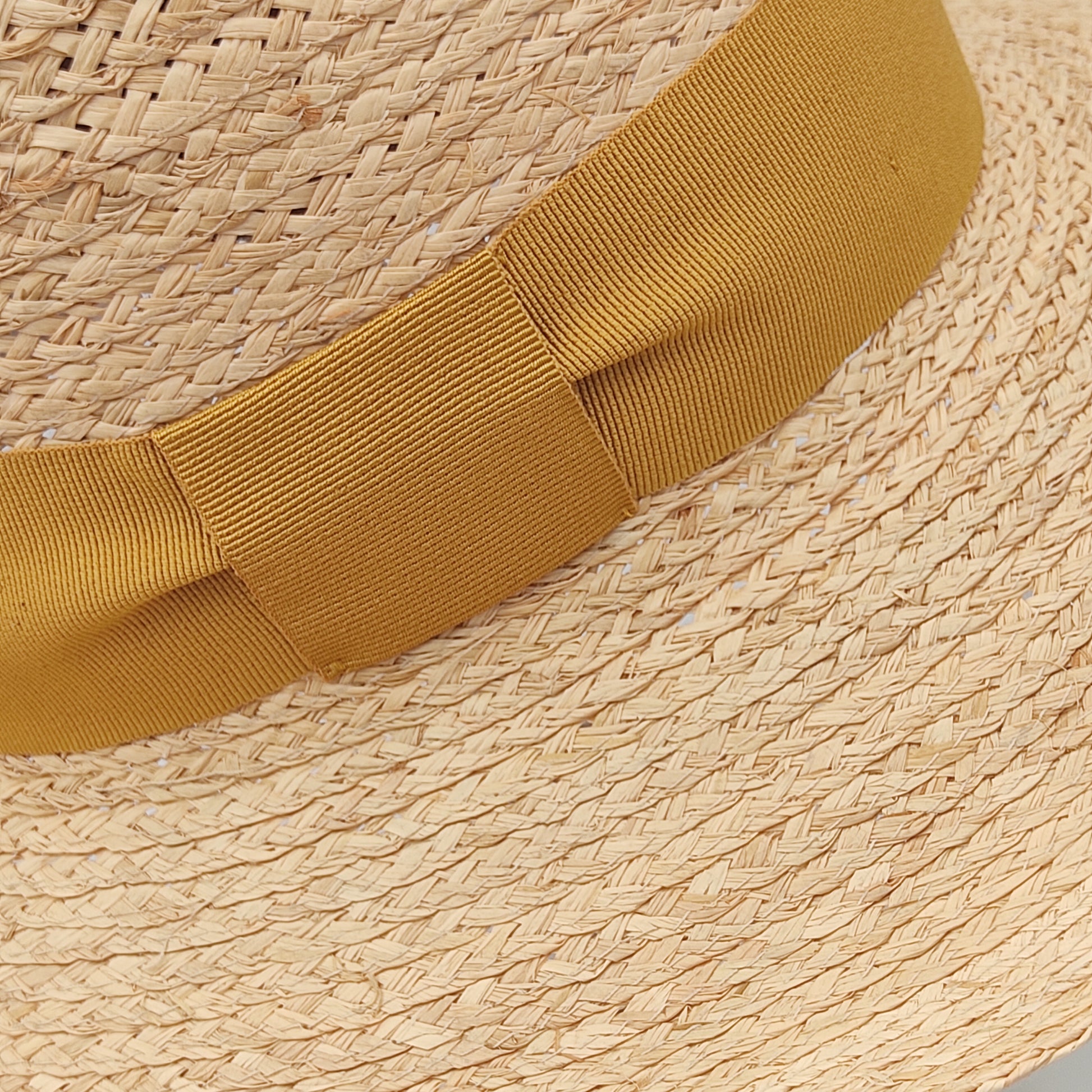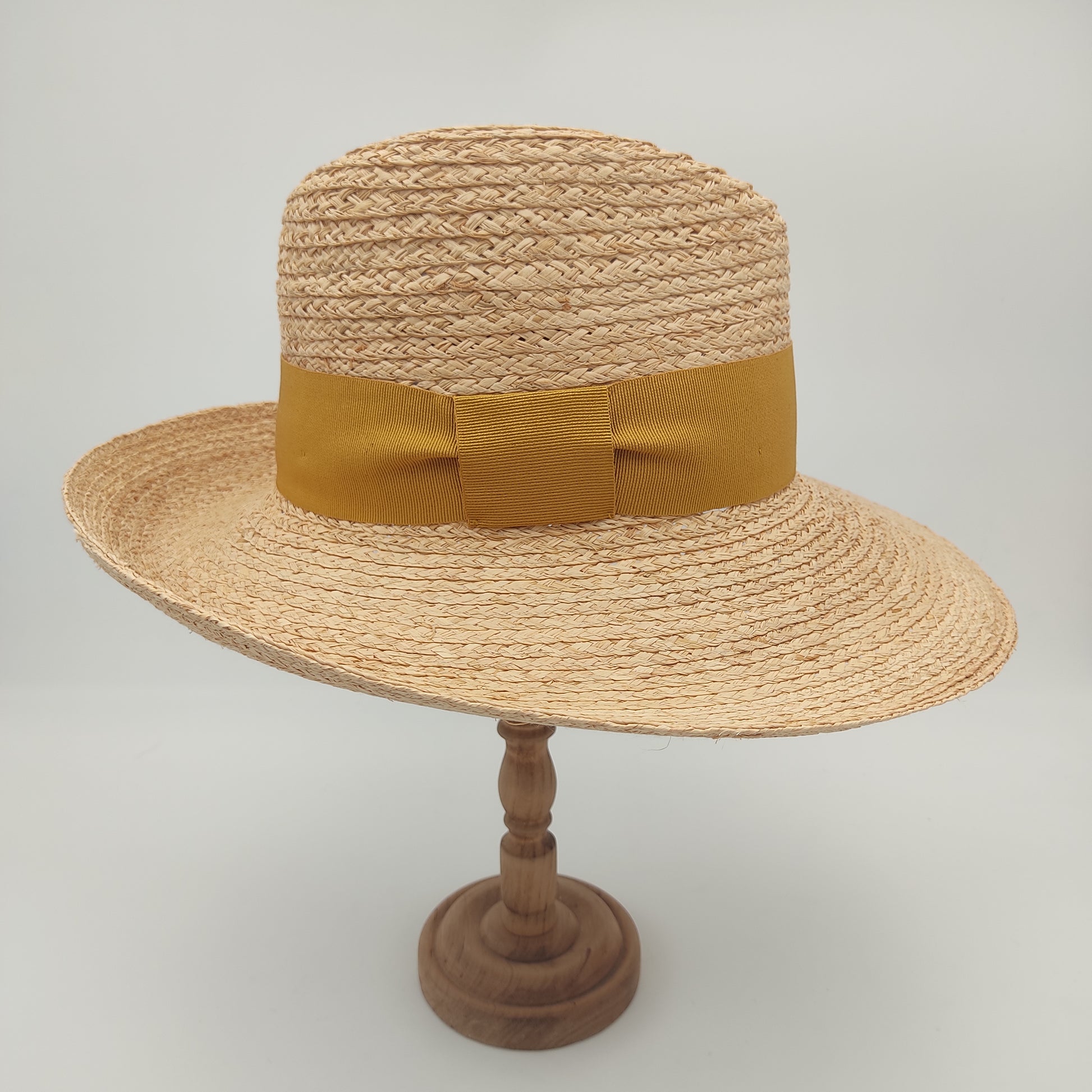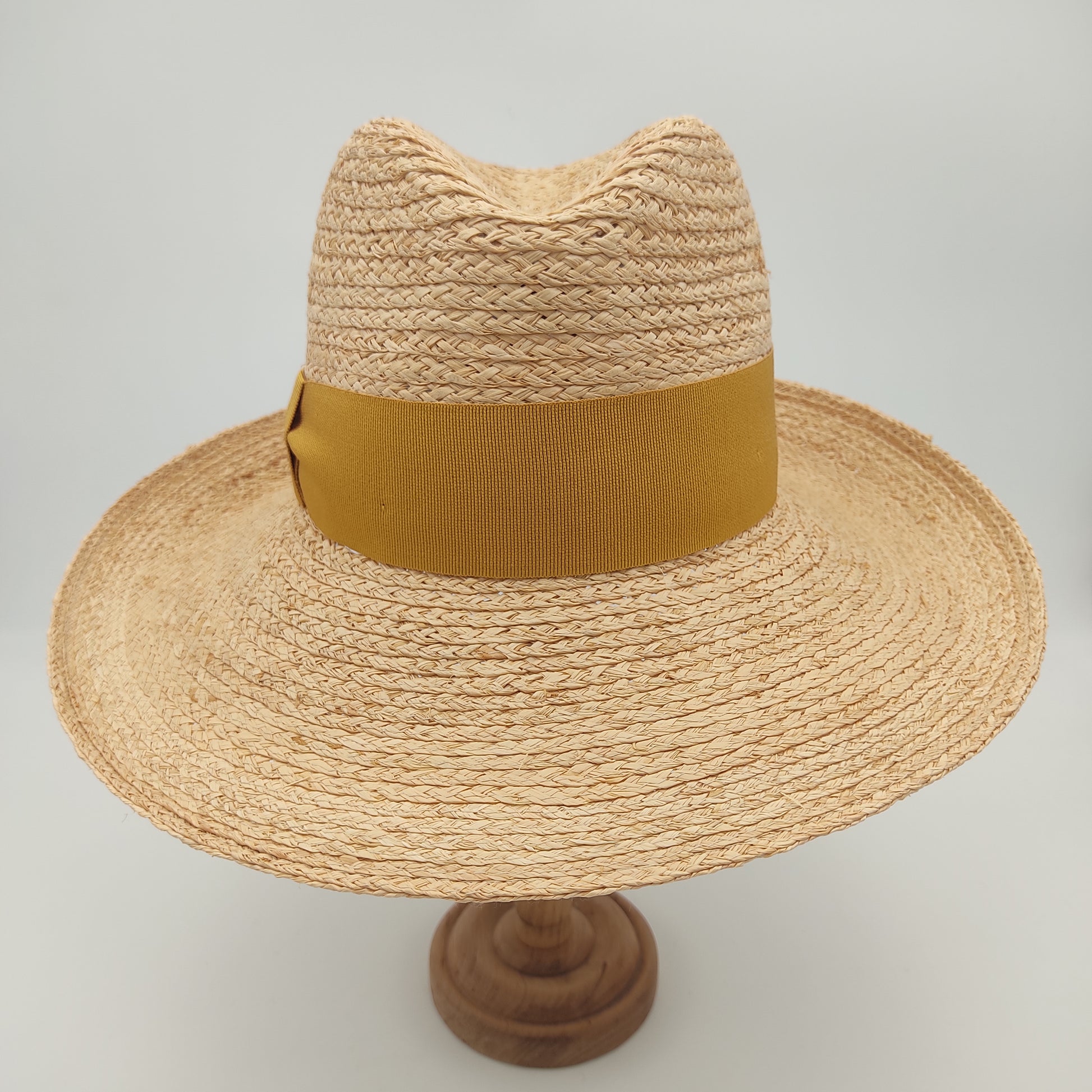 Realizzato in 100% paglia naturale, ha un'altezza della corona di 10 a 13 cm e una larghezza della falda di 10 cm. Questo cappello, disegnato e fatto a mano in Italia, è leggero e realizzato con un materiale naturale resistente e presenta un nastro decorativo sostituibile.