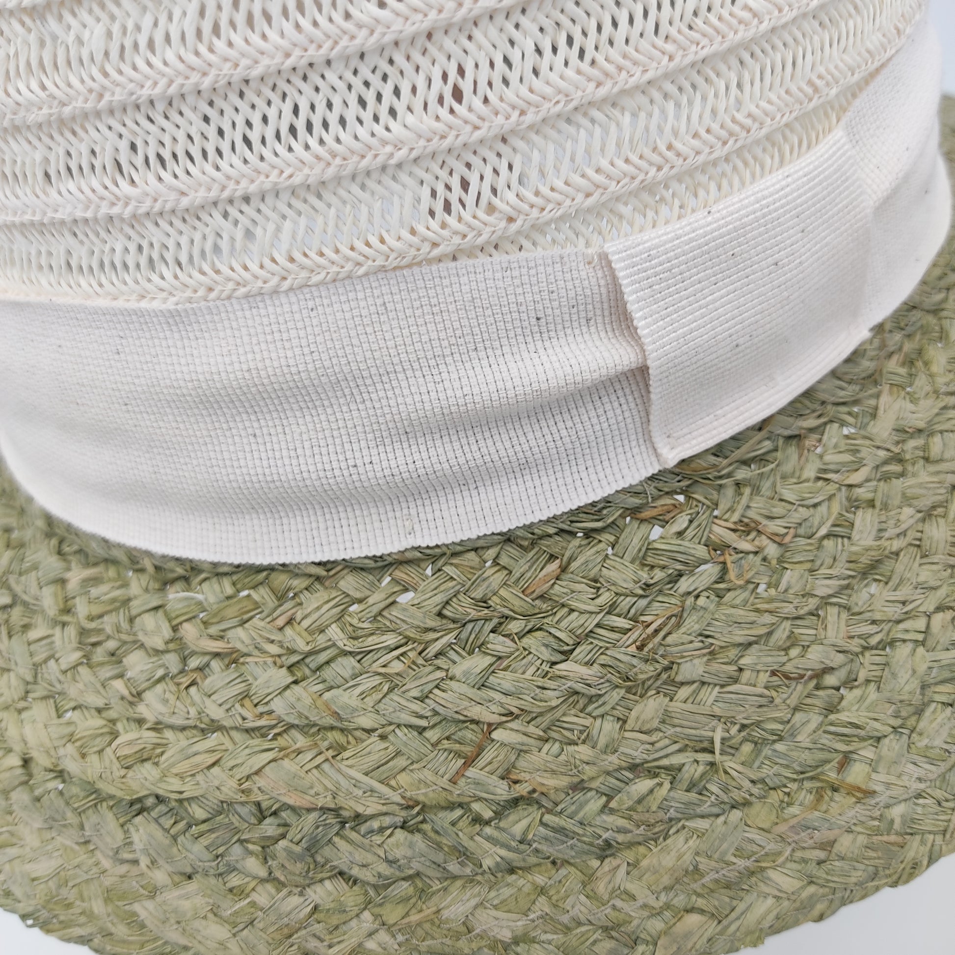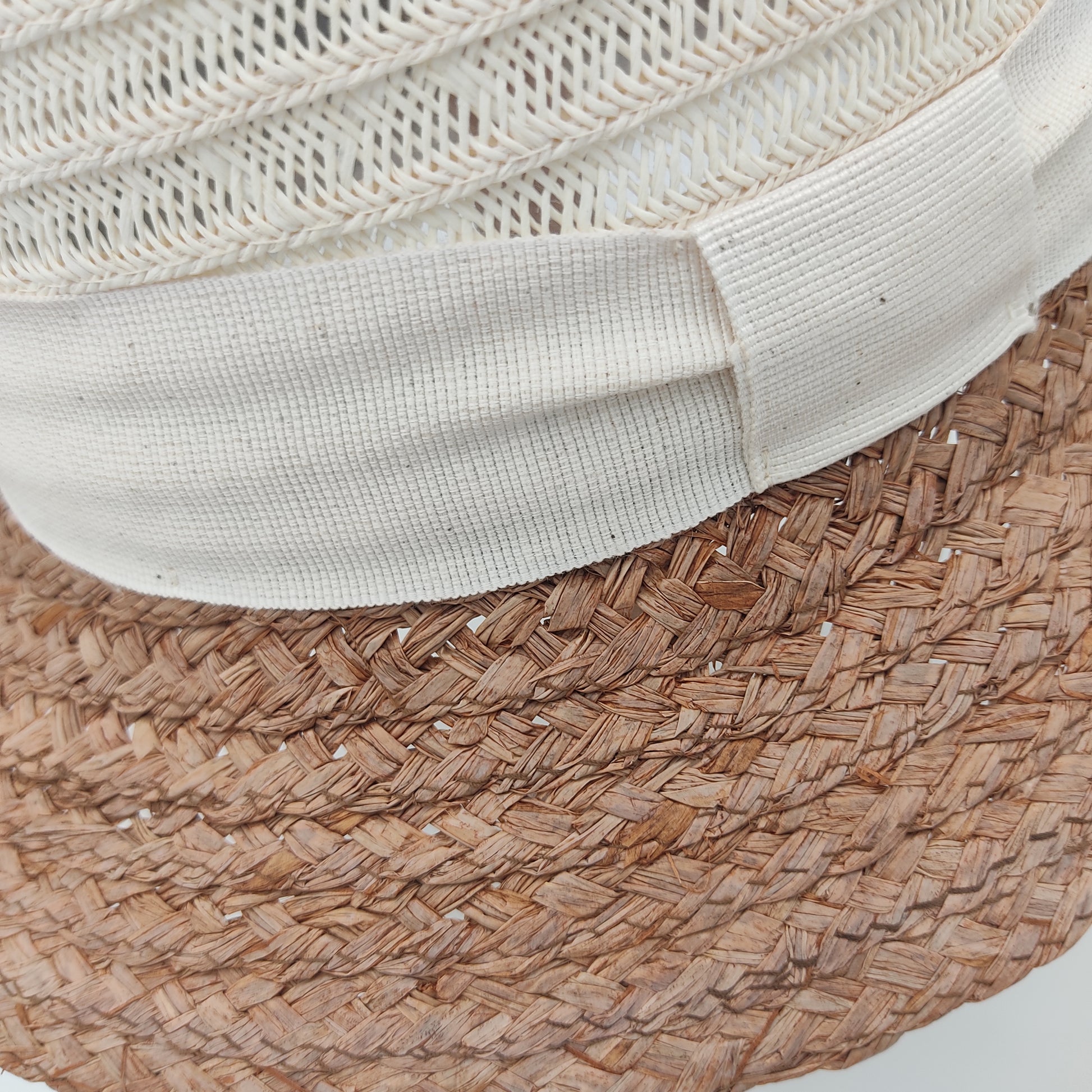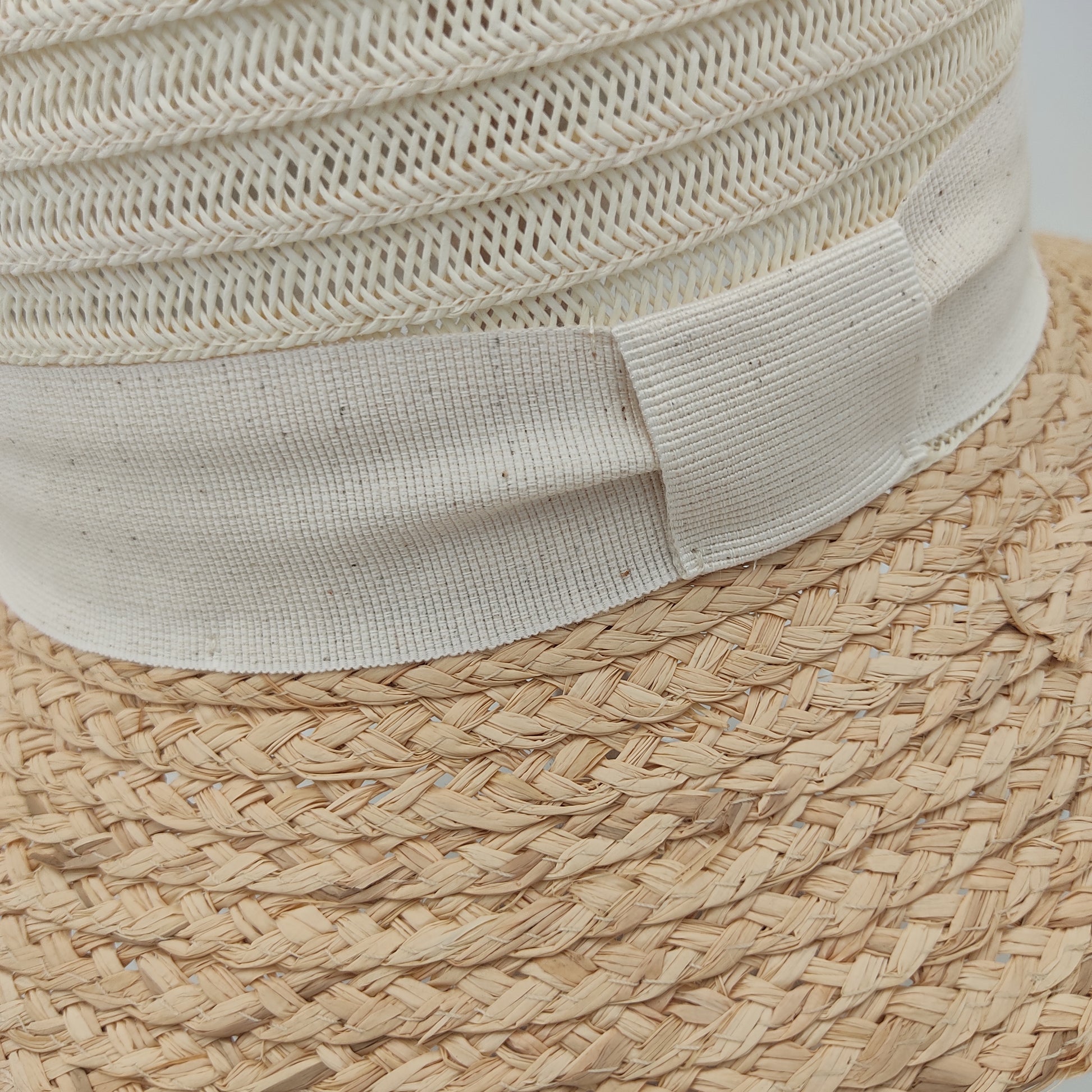 La falda è realizzata in treccia di paglia naturale, mentre la testa in una morbida treccia di carta tessile; materiali che lo rendono leggero e durevole, promettendo un comfort di lunga durata. Il cappello ha un'altezza della corona di 12 cm e una misura media della falda di 6 cm, per un’ottima protezione dal sole.