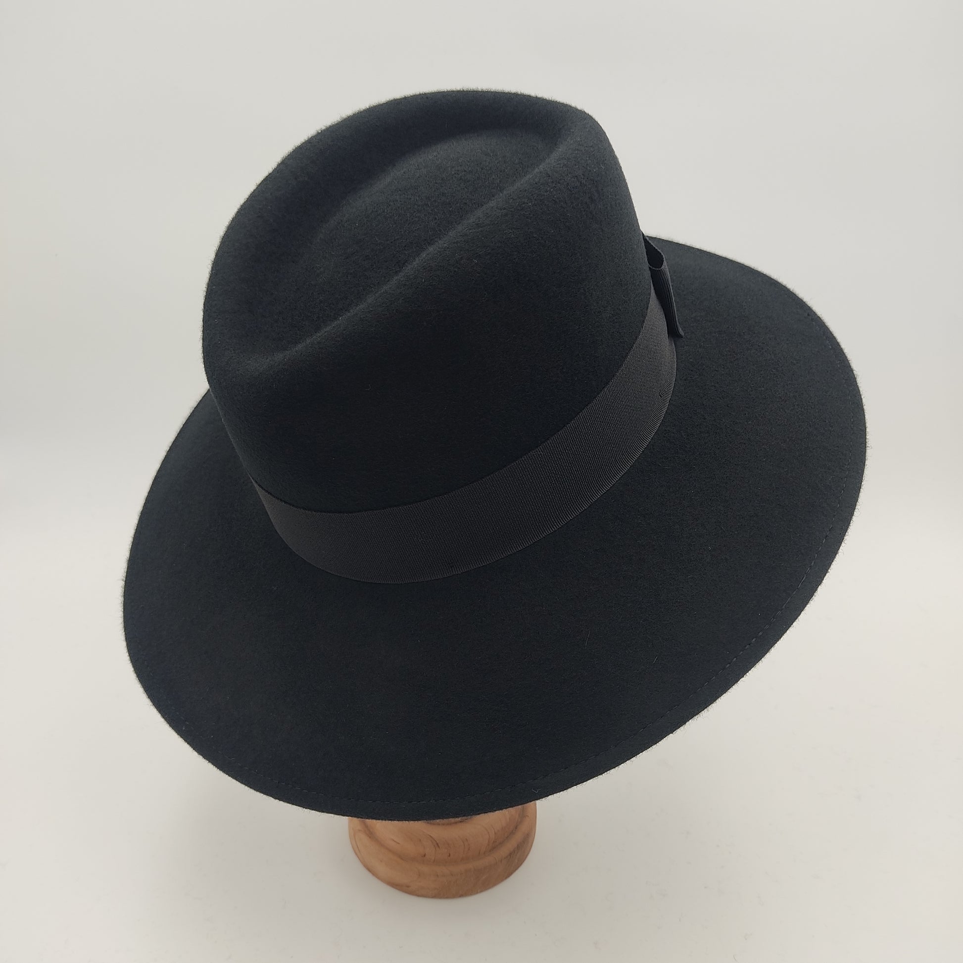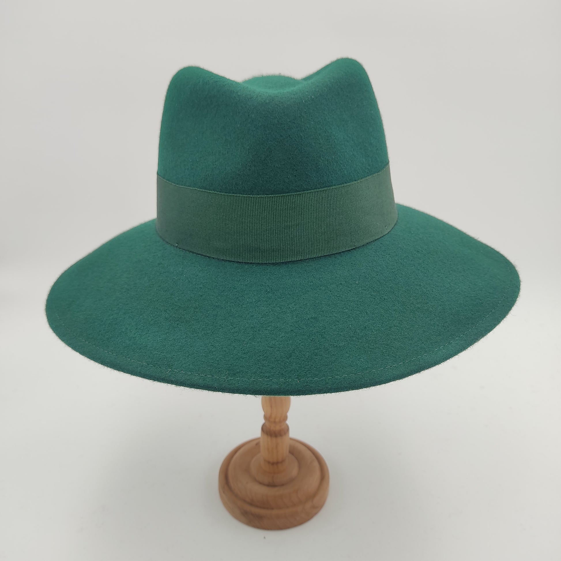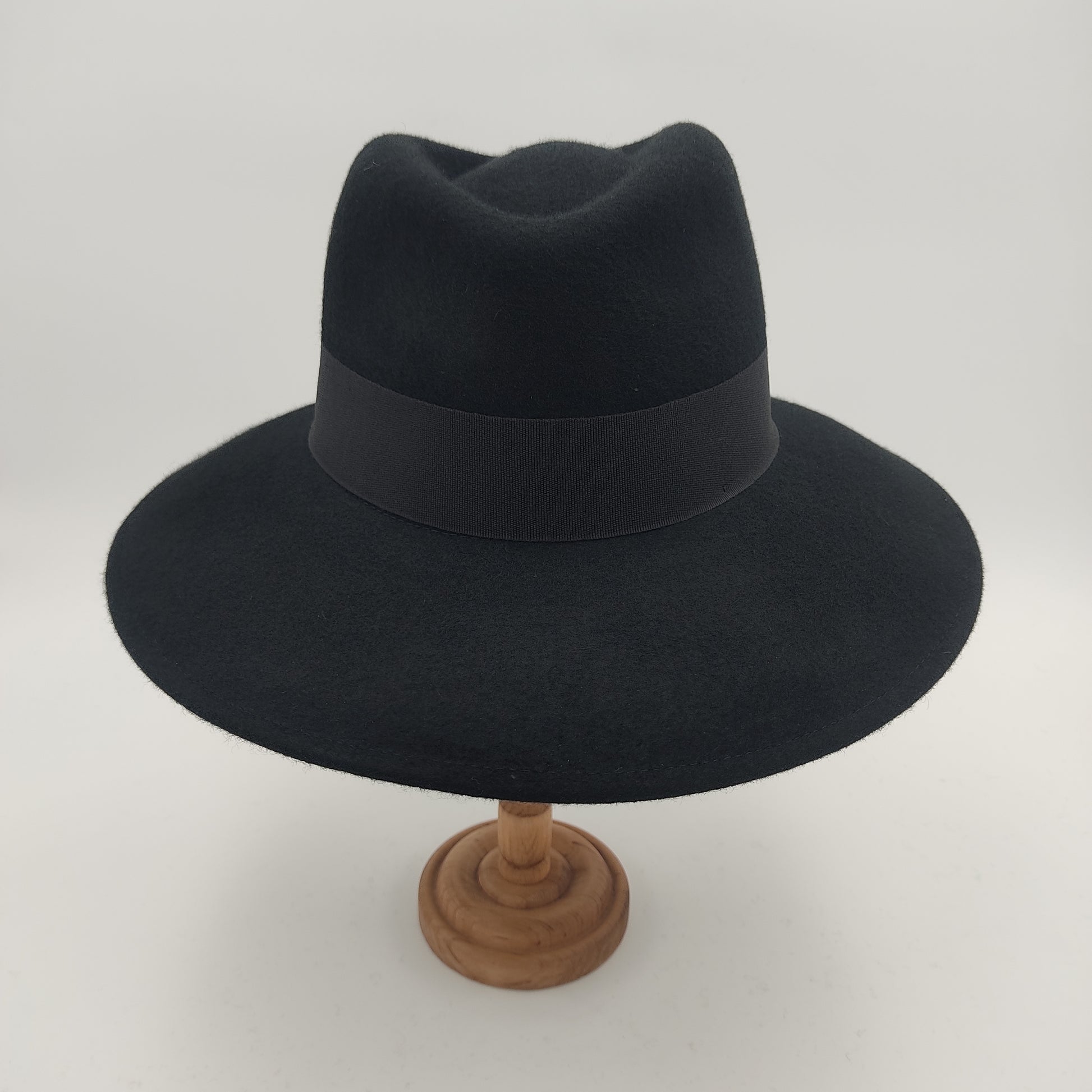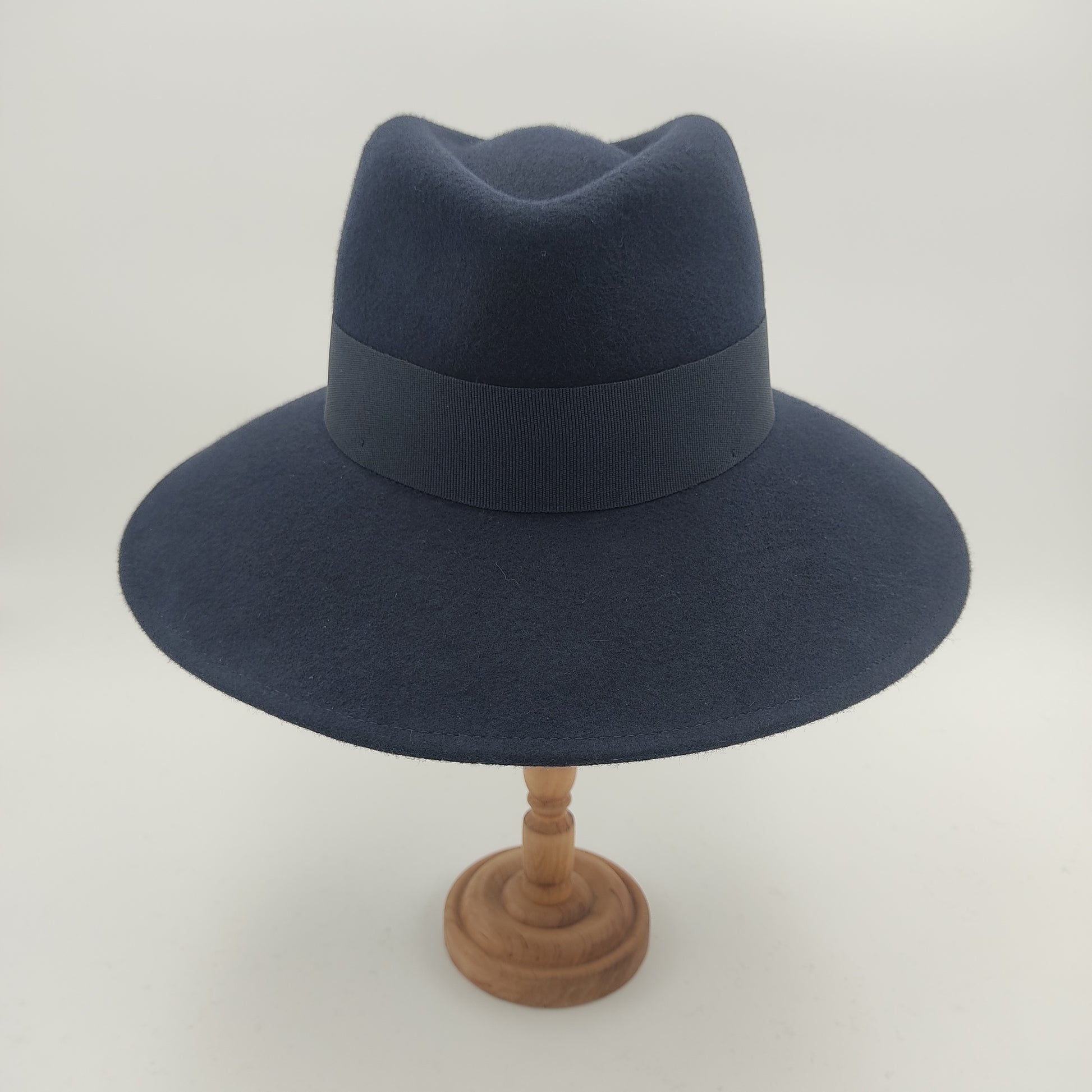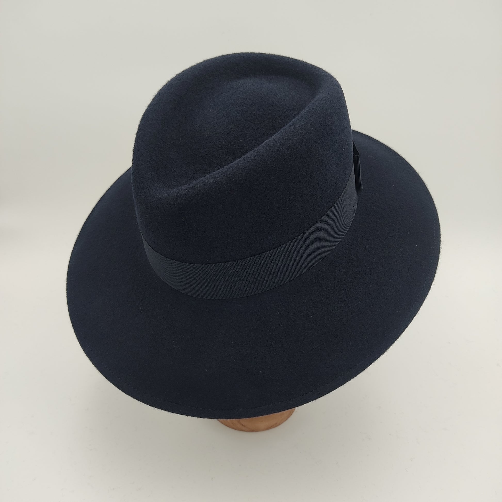Realizzato in Italia con feltro di lana al 100%, questo cappello ha una falda spiovente di 9 cm e la sua corona a goccia alta 9 cm si adatta perfettamente alla forma del capo.