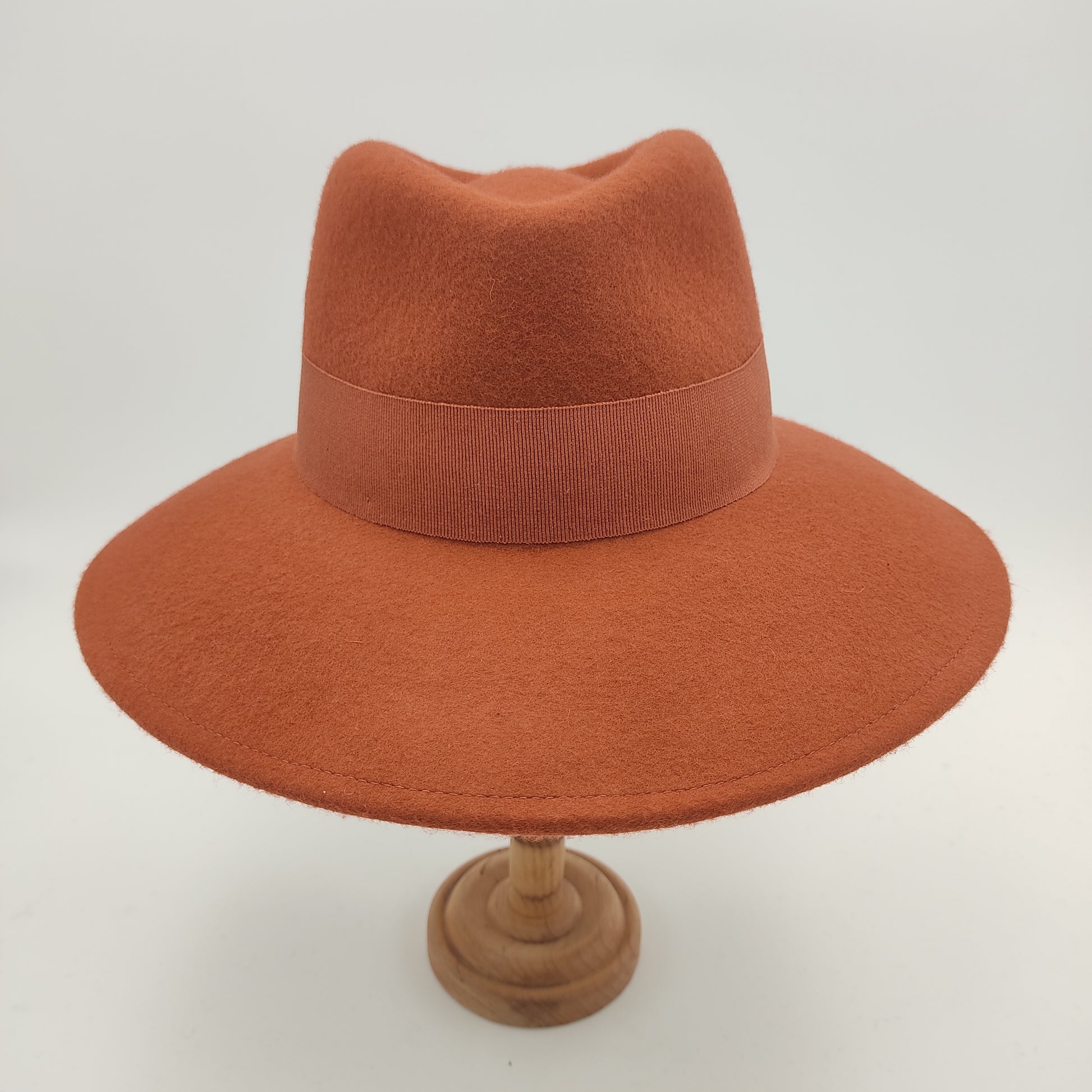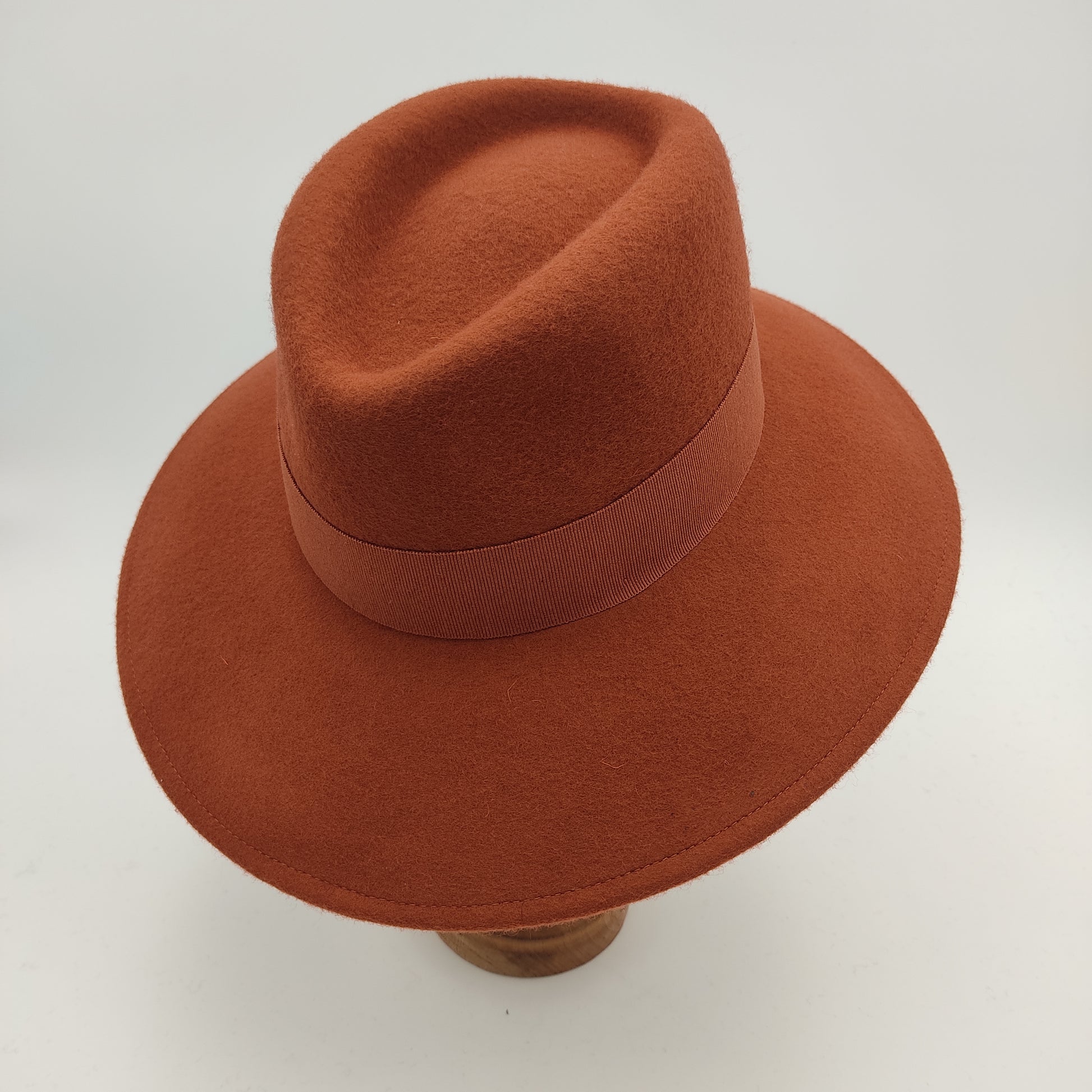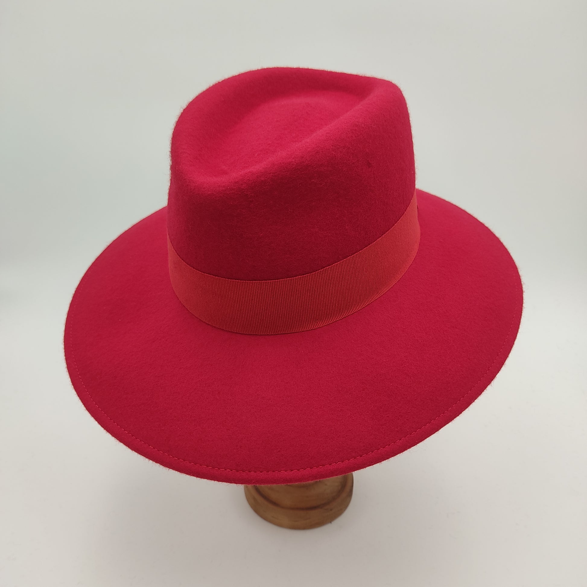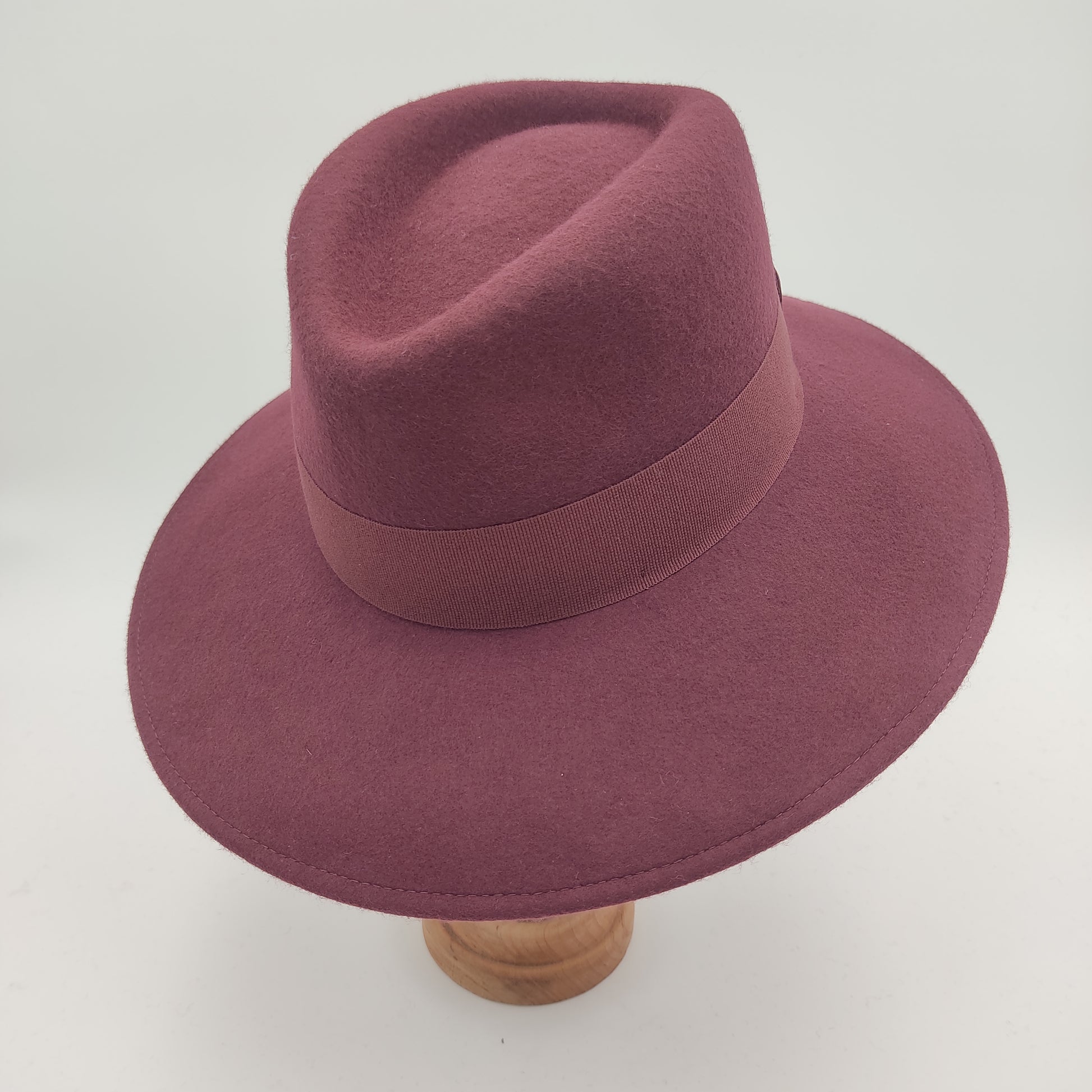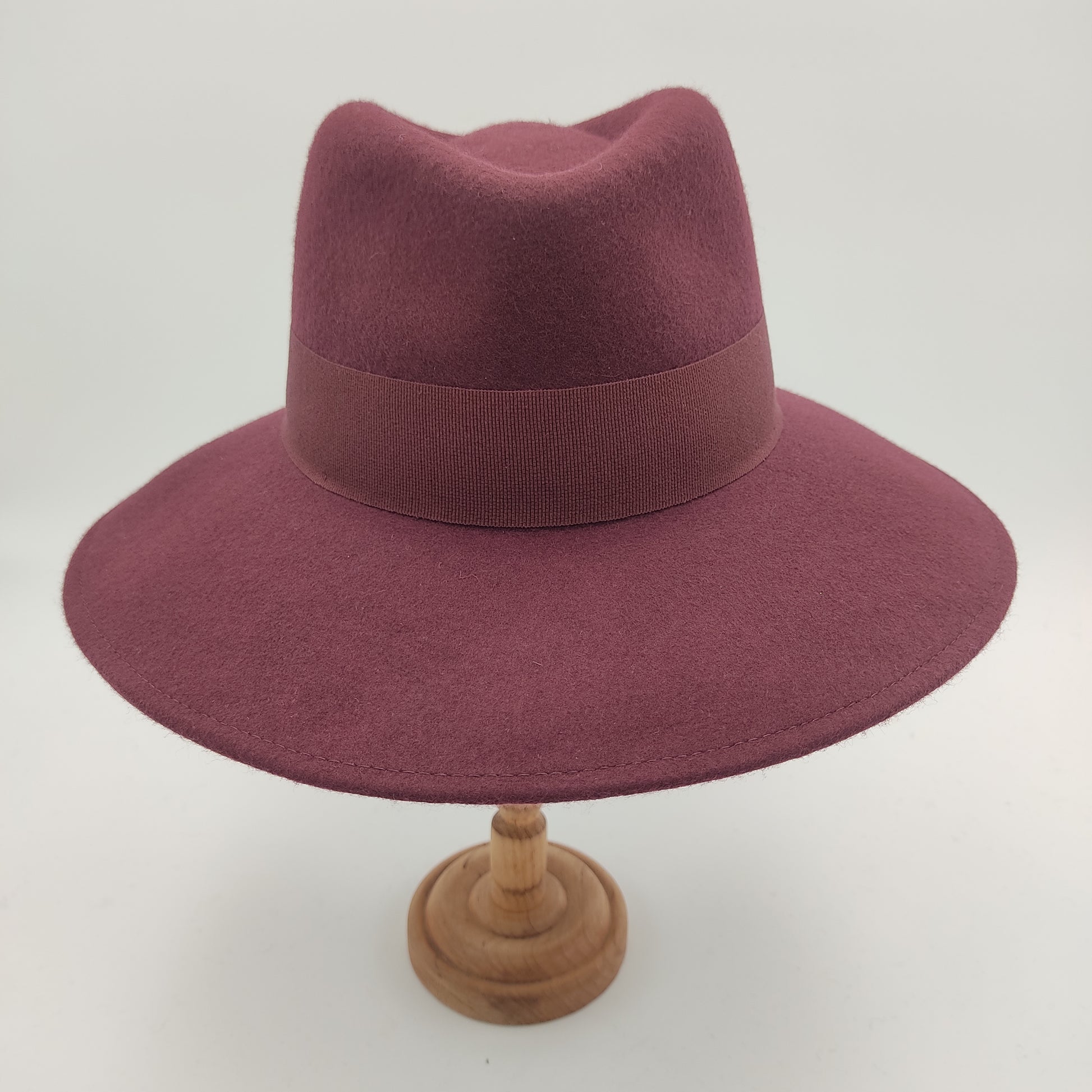 Realizzato in Italia con feltro di lana al 100%, questo cappello ha una falda spiovente di 9 cm e la sua corona a goccia alta 9 cm si adatta perfettamente alla forma del capo.