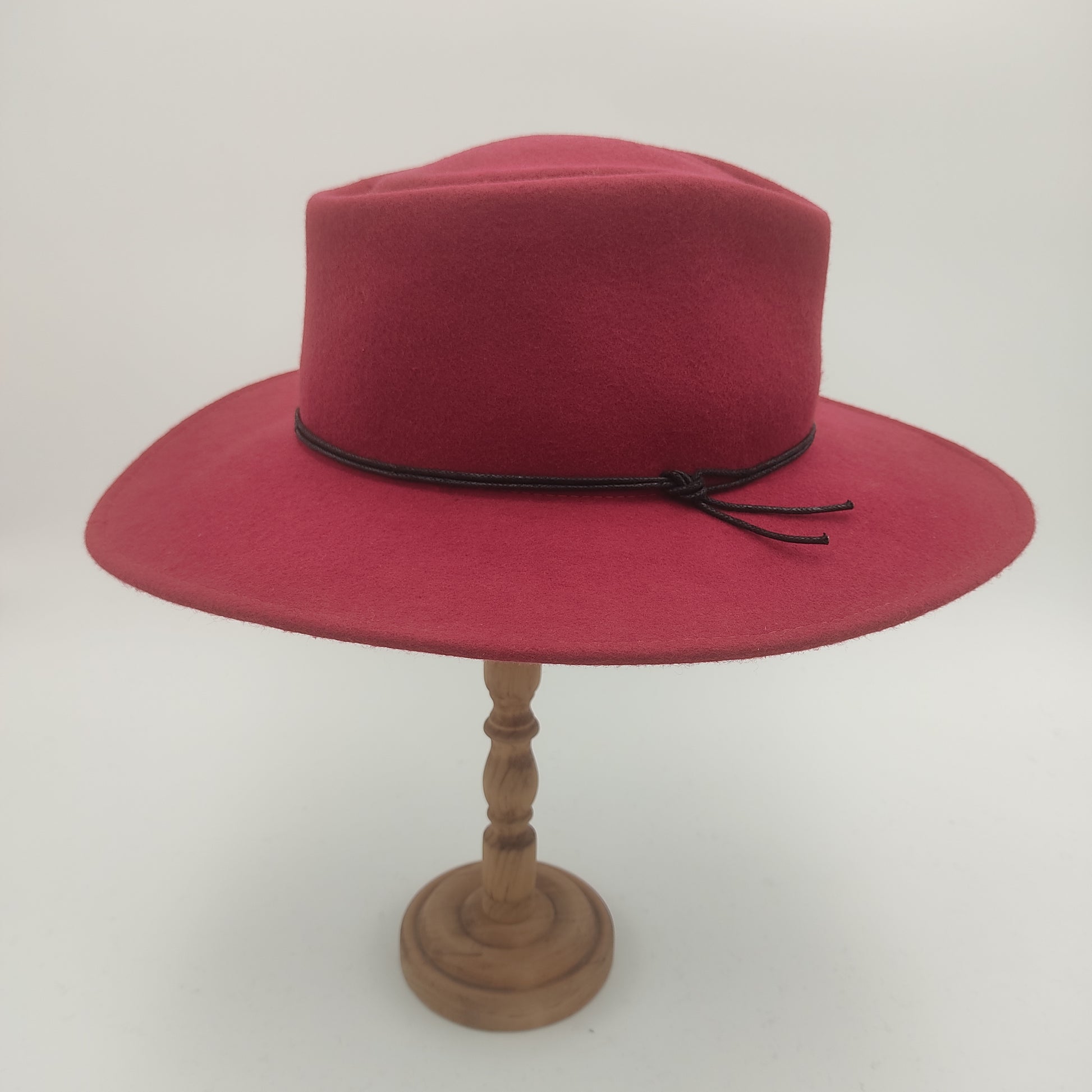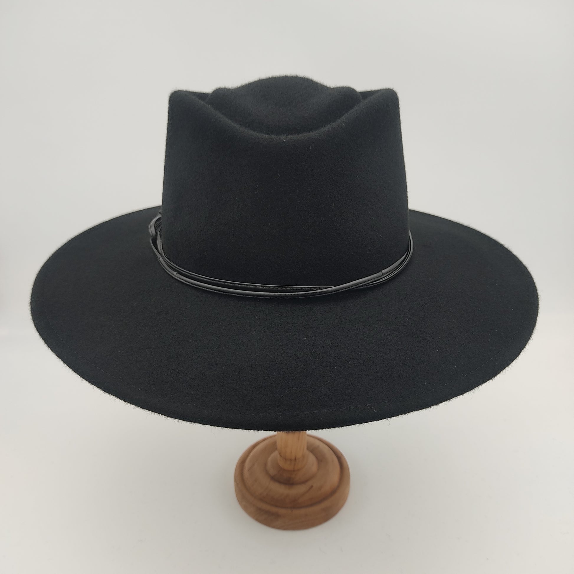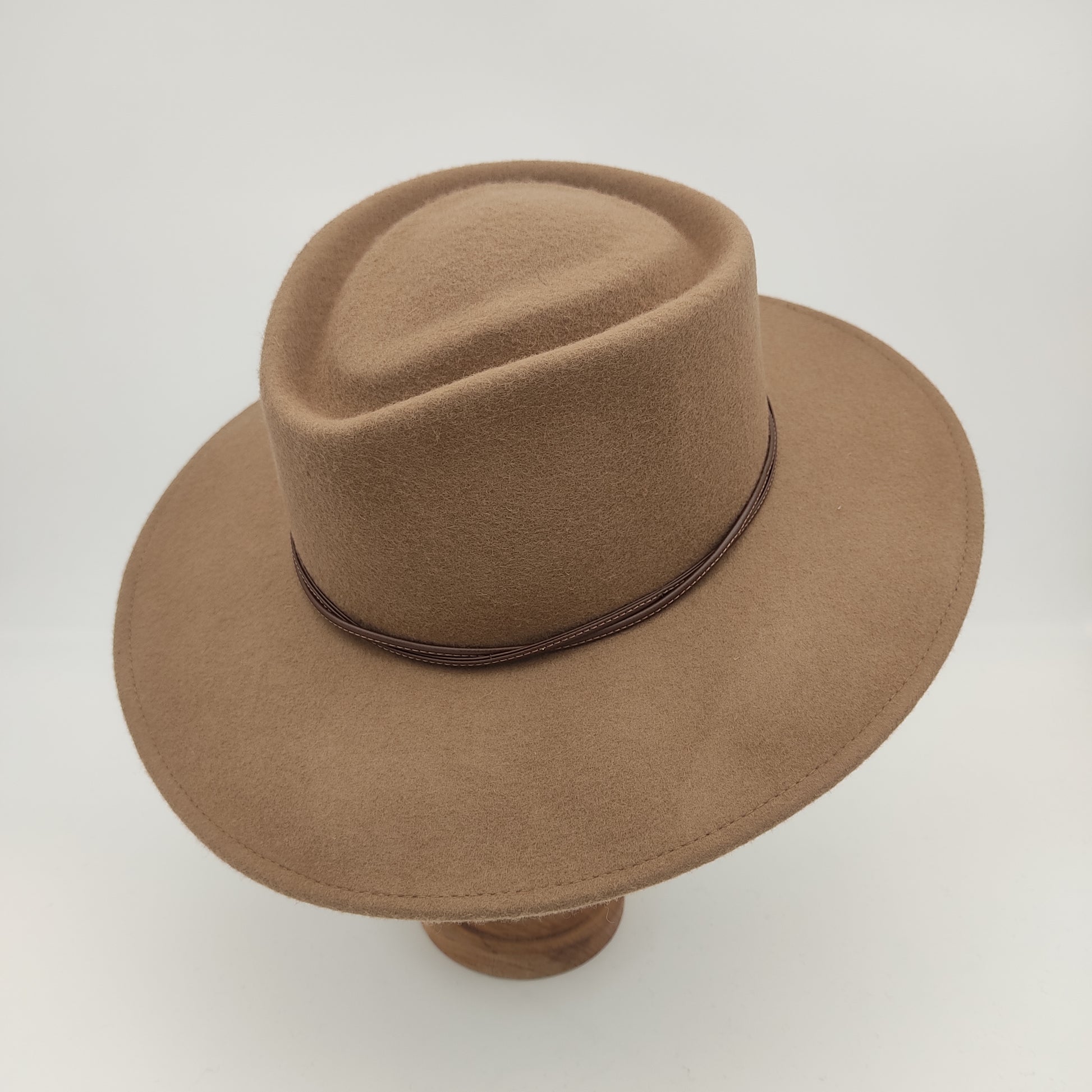 Realizzato in Italia con feltro di lana al 100%, Vanessa vanta una falda ampia di 8,5 cm e la sua testa a goccia, alta 8.5 cm e con una particolare scanalatura decorativa, si adatta perfettamente alla forma del capo.