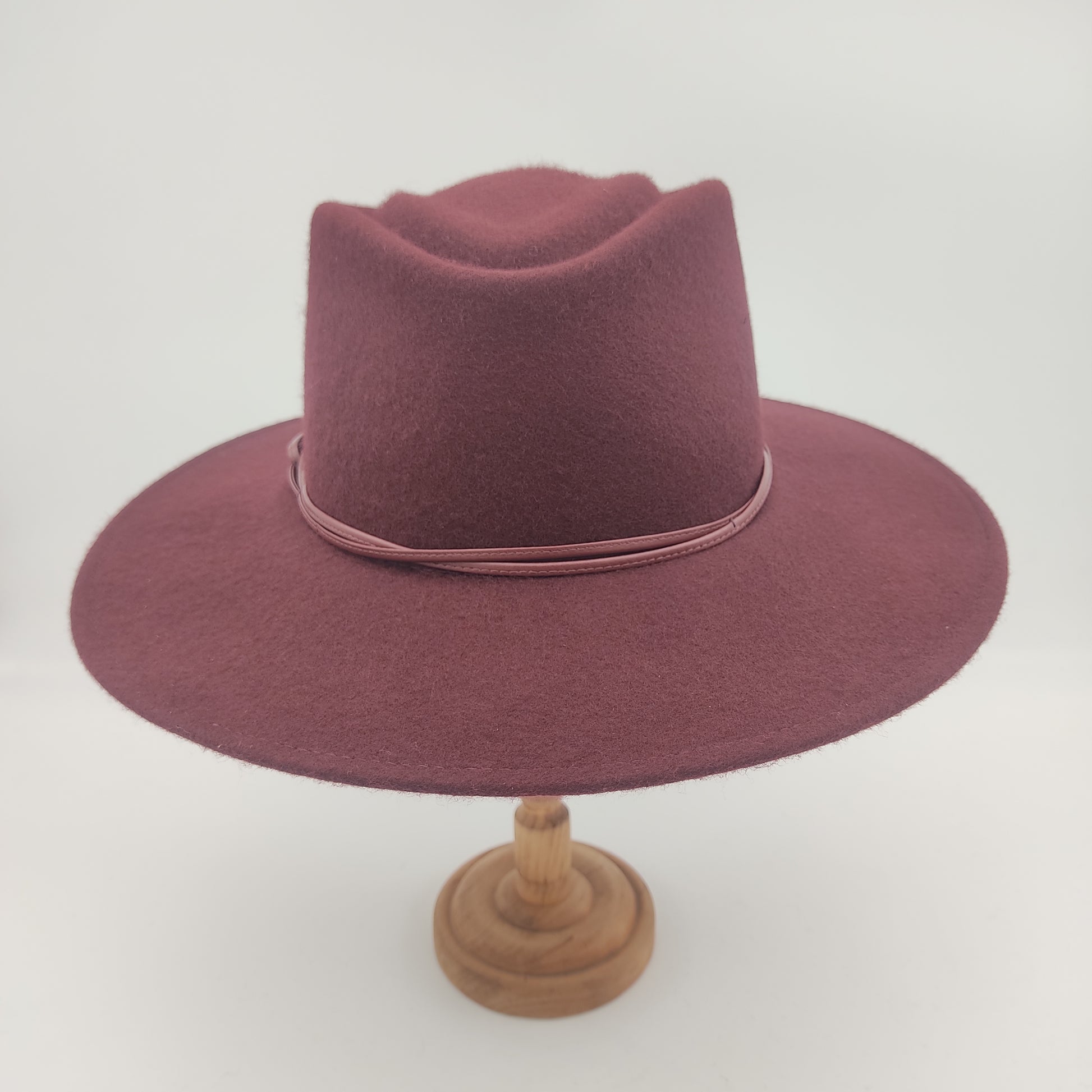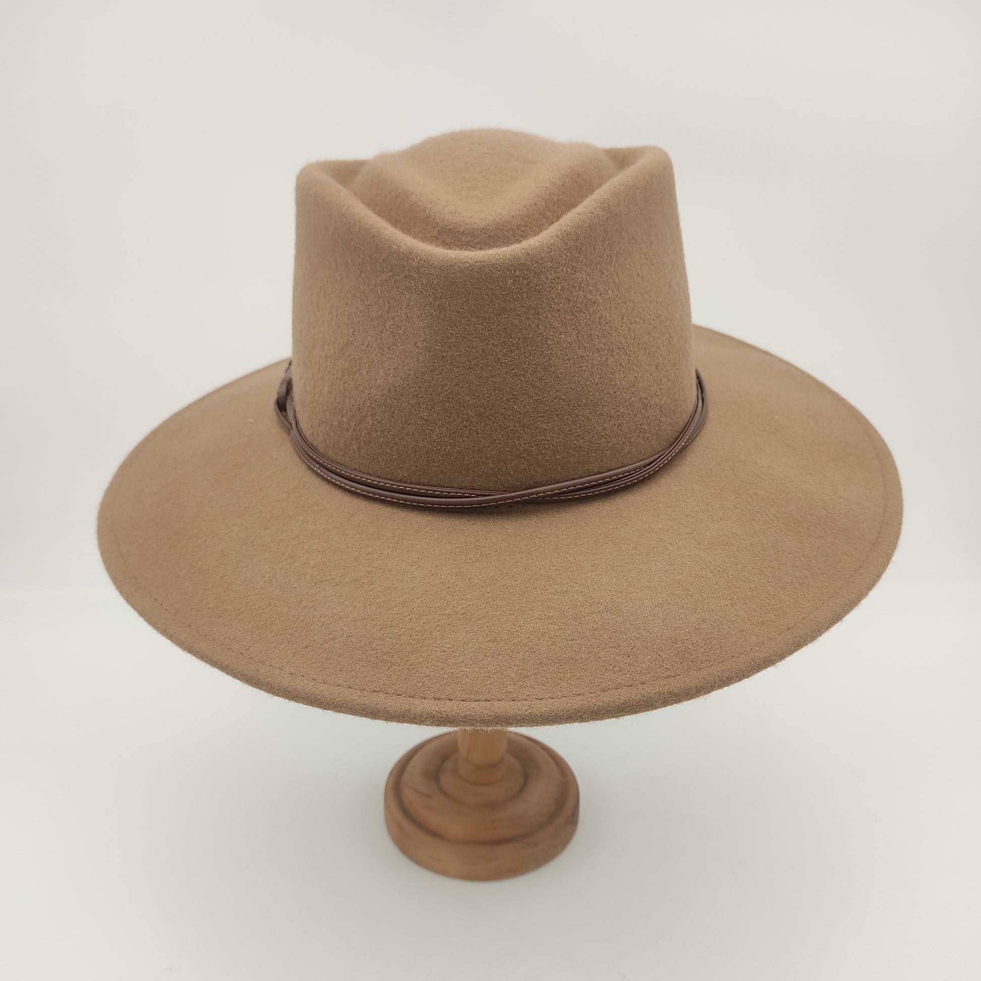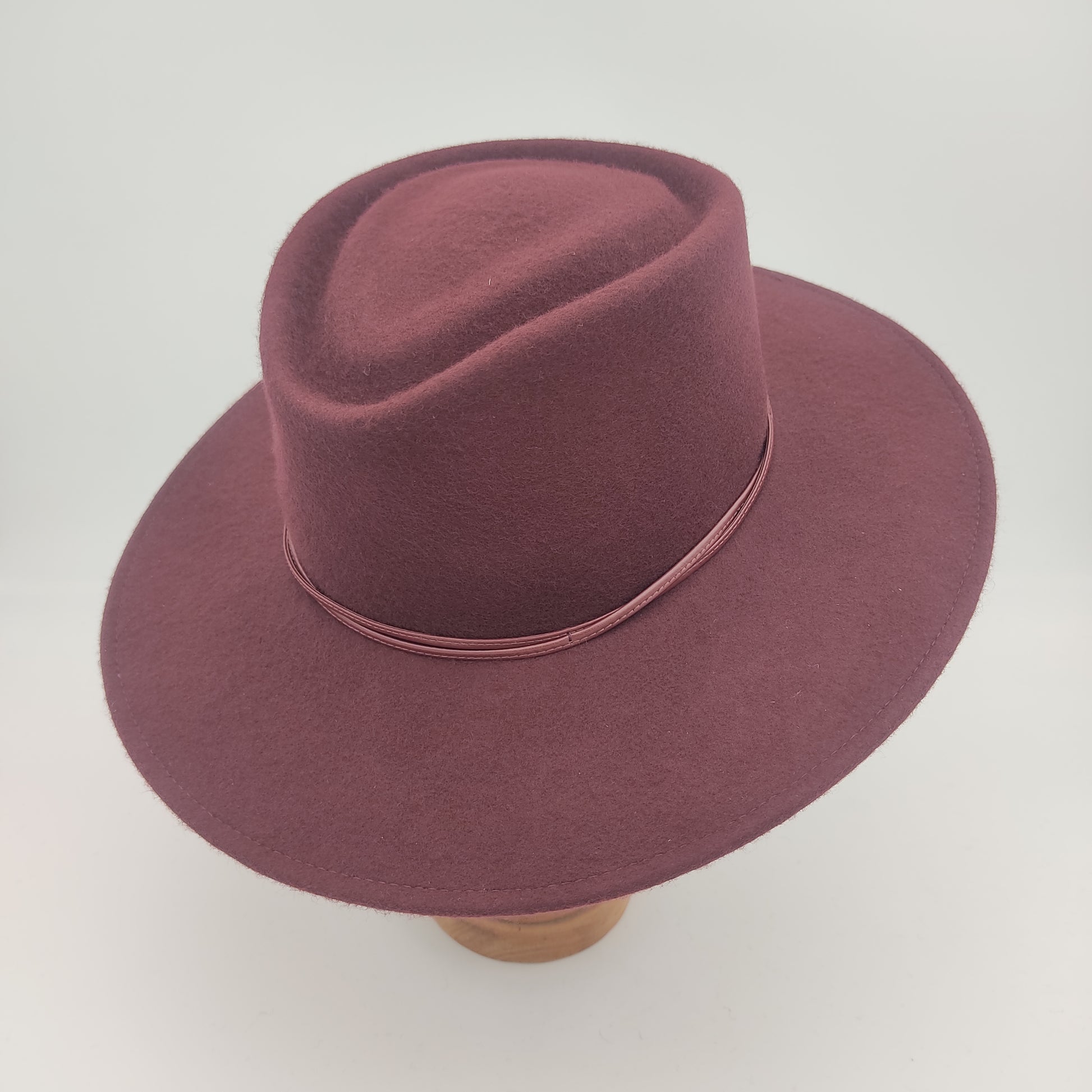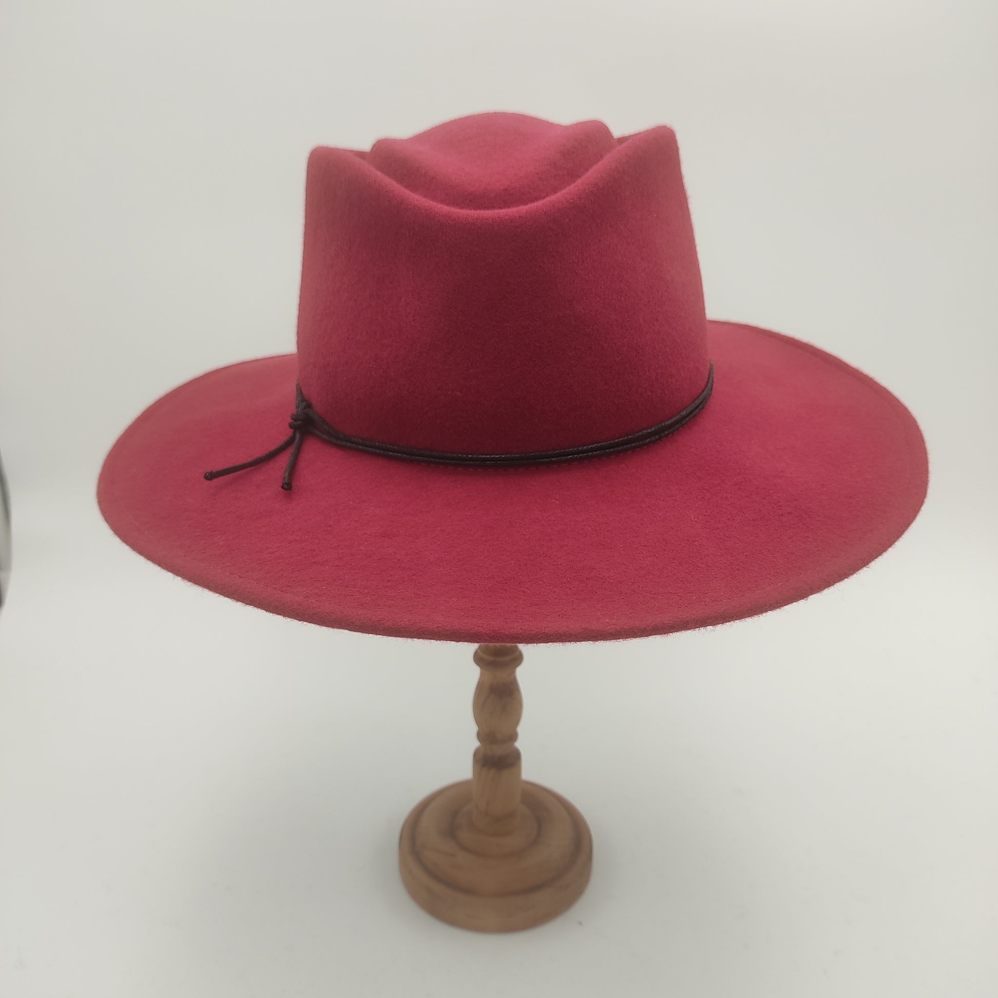 Realizzato in Italia con feltro di lana al 100%, Vanessa vanta una falda ampia di 8,5 cm e la sua testa a goccia, alta 8.5 cm e con una particolare scanalatura decorativa, si adatta perfettamente alla forma del capo.